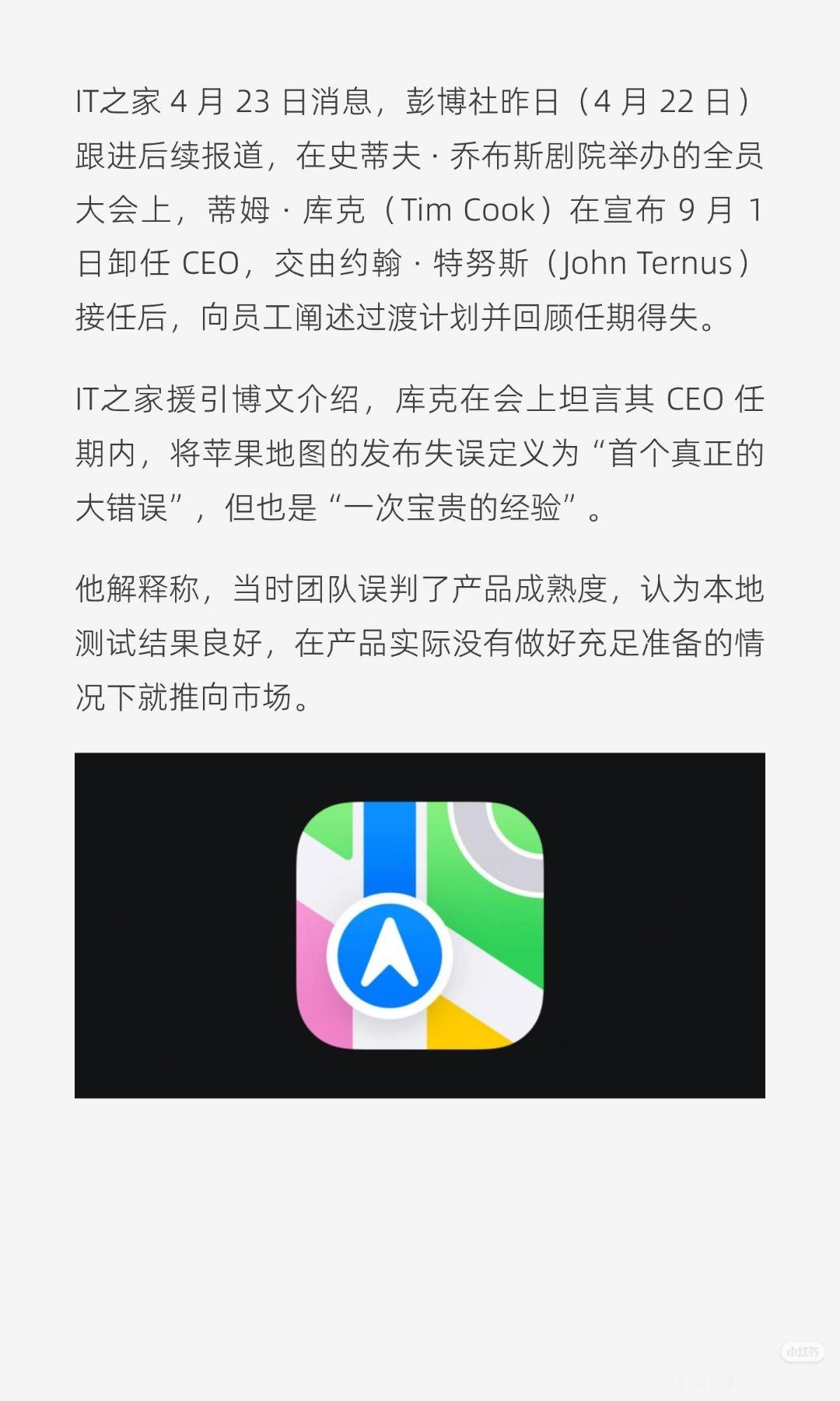 库克称苹果地图发布是首个重大错误核心是决策仓促和对技术难度的低估,"浙高速遍布全
