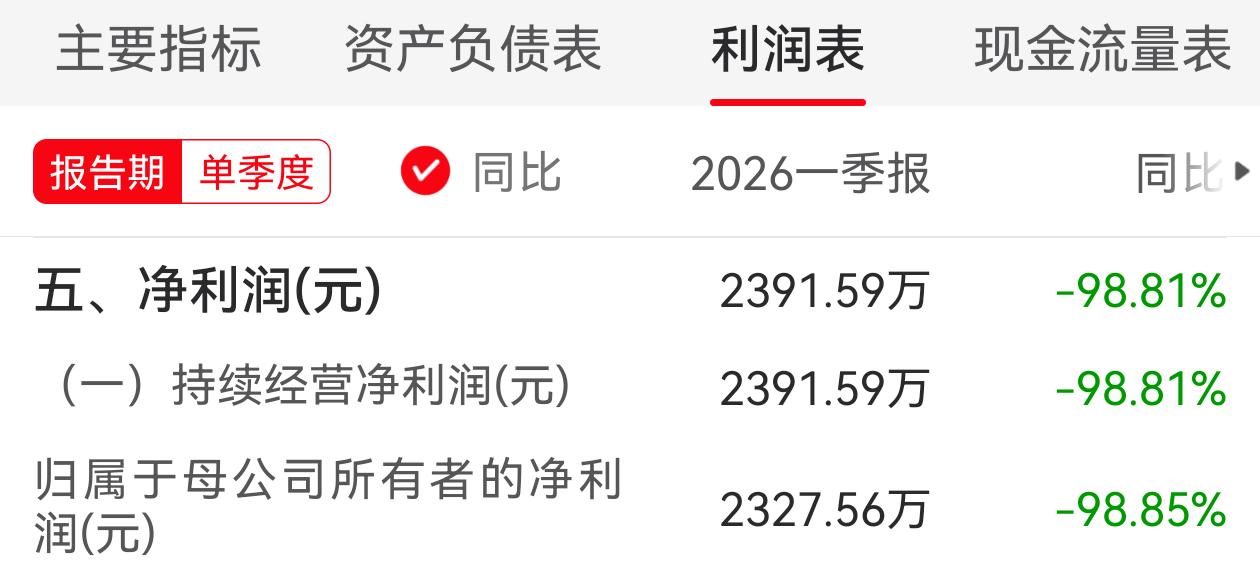 光线传媒2026年一季度净利润2327.56万元,同比下降98%,虽然有“爆款后遗症”与会计确认规则共同导致的极端数据失真,但是利润绝对数跌至近五年同期最低点,股价继续大幅下跌,去寻求所谓的“业绩底”支撑,仍有可能。