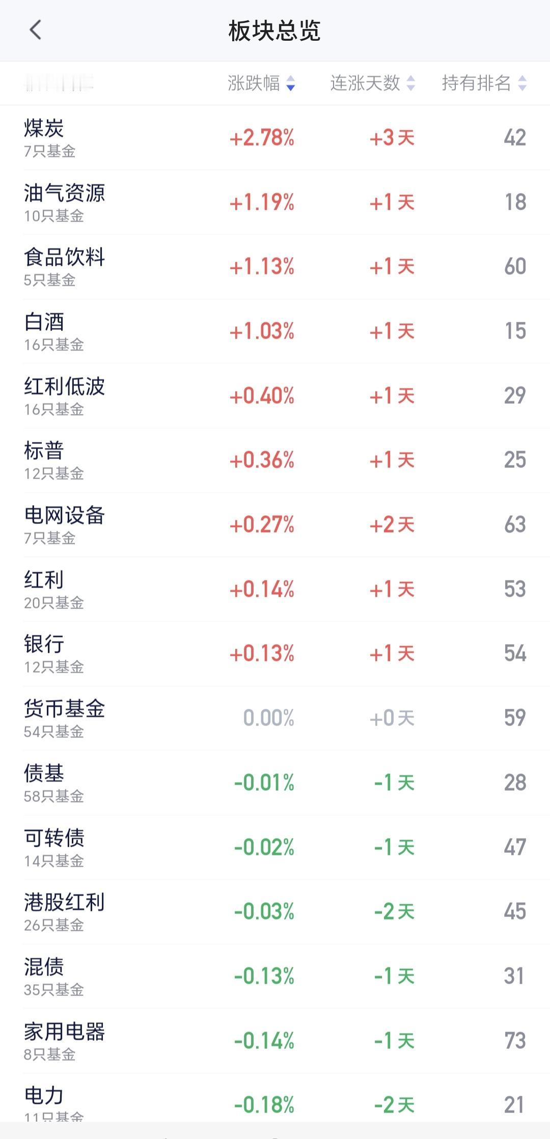 整个市场上涨幅度最大的三个板块是:煤炭板块,油气资源板块,食品饮料板块,下跌幅度最大的三个板块是:稀土永磁板块,黄金板块,固态电池板块。