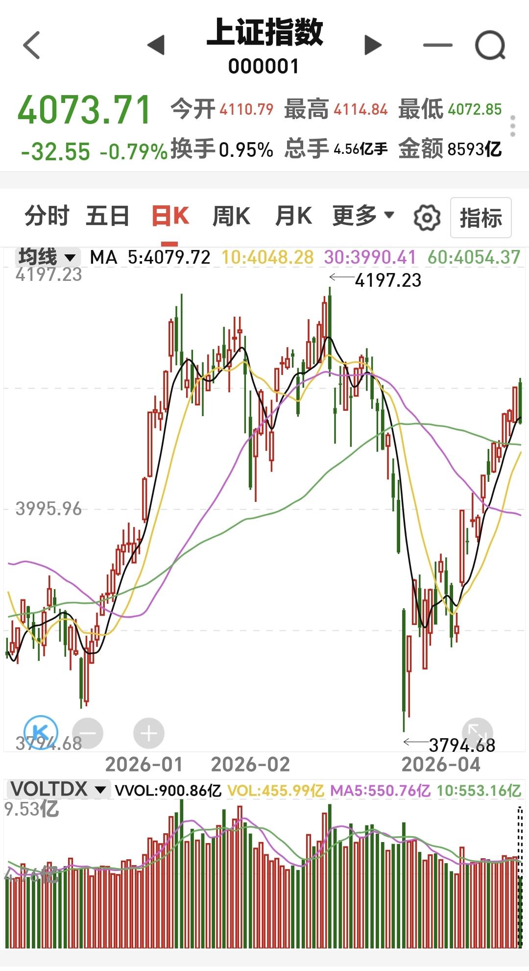 中午收盘的时候,五天线位置是4079点,收盘点位4073点,收在五天线之下,下午观察收盘的时候能不能收在五天线之上,如果收不到五天线之上,而且收在4068点之下,下一个支撑位置看4021点,再下一个支撑位置看3992点。