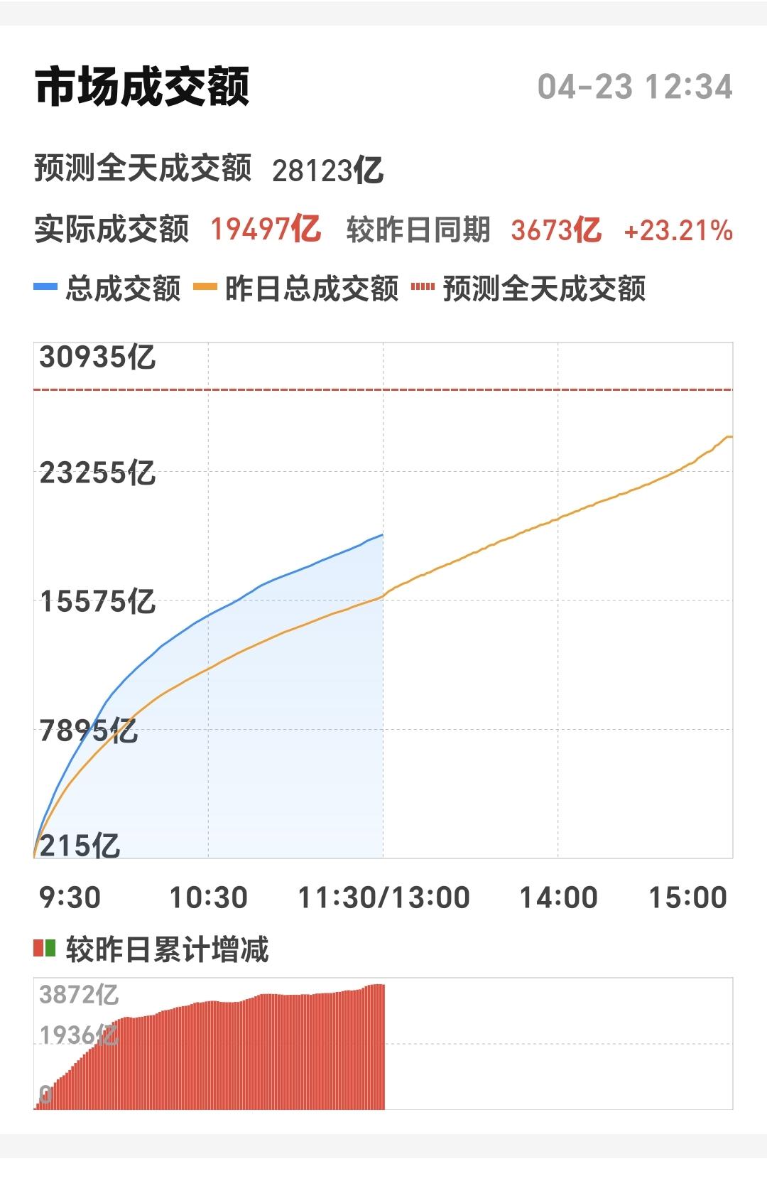 今天上午两市累计成交19479亿,相比于昨天放量了3673亿,放量幅度达到了23.21%,超过了我昨天晚上文章当中说的20%,昨天晚上就说,如果今天放量幅度达到20%以上,那就是放巨量,如果今天的缩量幅度超过15%以上,那就是急剧缩量,这两种情况都不是好现象,昨天晚上看了的人在评论区讲一下。