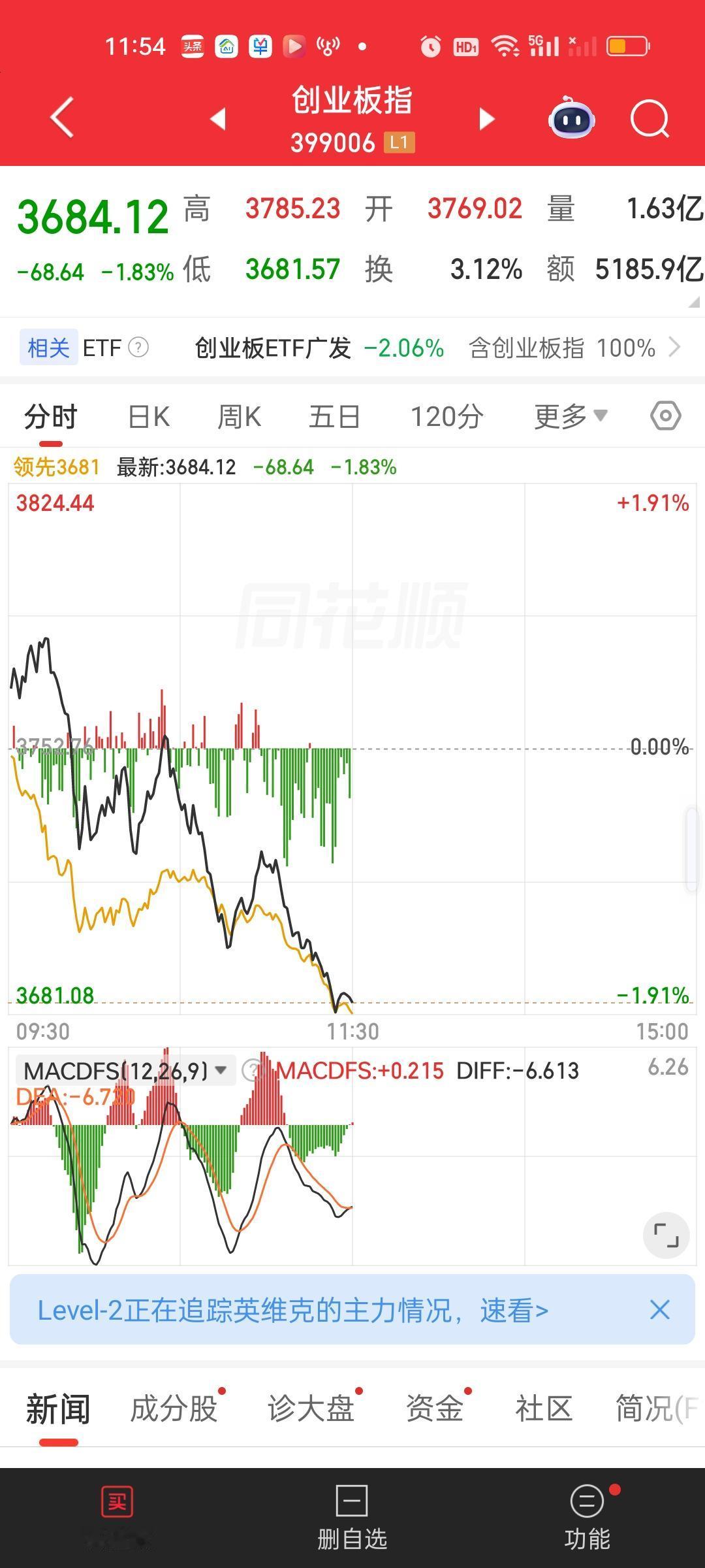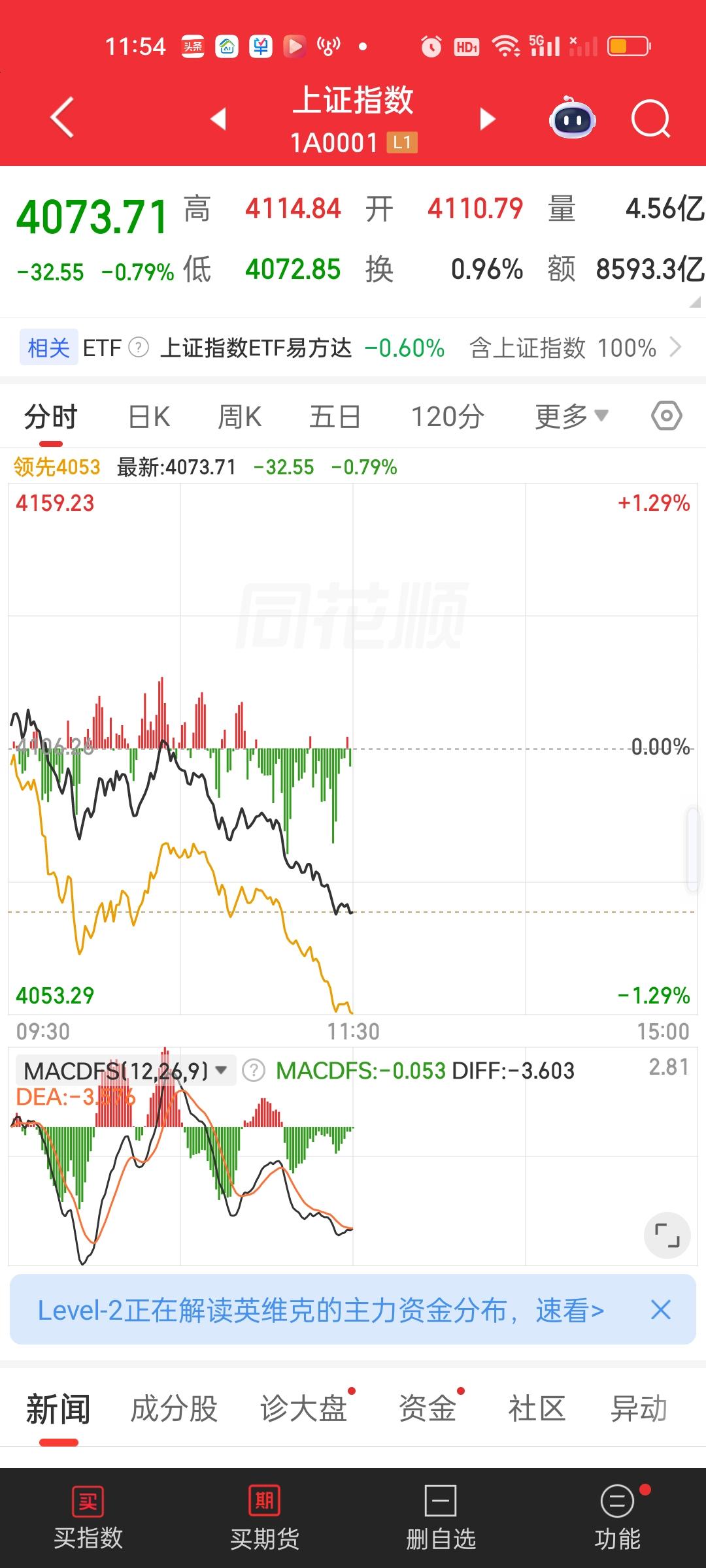 中午收盘了,今天的亏损效应是非常强的。可能这就是黑周四的威力,正常也不正常。没有只涨不跌的股市,也没有只跌不涨的股市。上午成交量放量了3686亿,但放量的这部分资金大部分都流出了。流出了1168.74亿。可见今天提桶跑路的人不在少数。个股超4300家下跌,25家跌停。如此多的跌停家数,最起码从情绪面讲,是很悲观的。