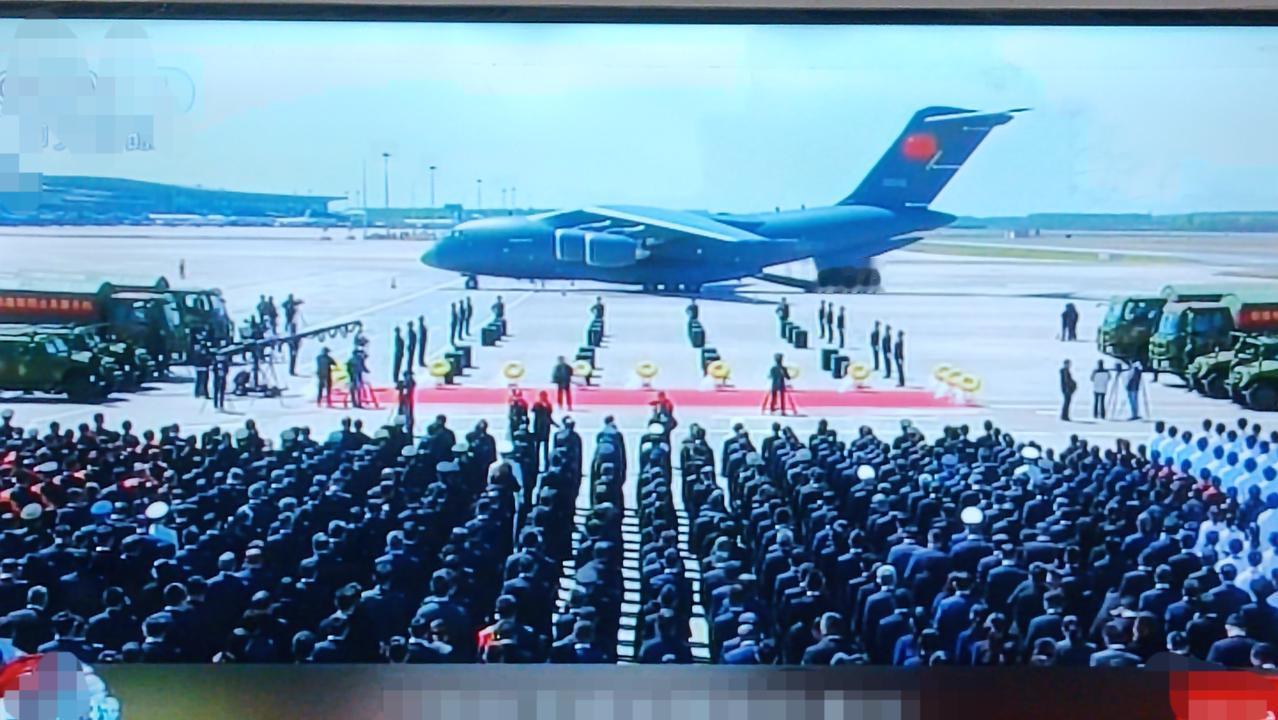 今年是我国自2014年起,在空军组织专机从韩国迎回抗美援朝期间牺牲的包含这次的12名志愿军烈士共计1023名英烈的骸骨及其部分的遗物以来,首次进行了“空海对话”的仪式,来迎接志愿军烈士回国回家,这充分体现了中国空海军全体指战员对抗美援朝的中国人民志愿军英烈的尊重,因为有了以“鄂尔多斯”舷号580护卫舰为代表的人民海军的加入,也是实现了陆海空三军同时同地域的联动方式,共同向光荣的中国人民志愿军致敬的这一个意涵的意思表达!山河共盼,英雄回家!山河无恙,国泰民安!