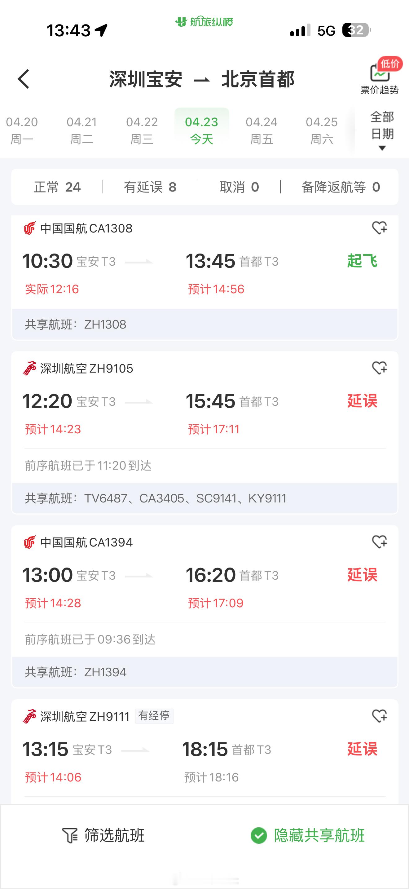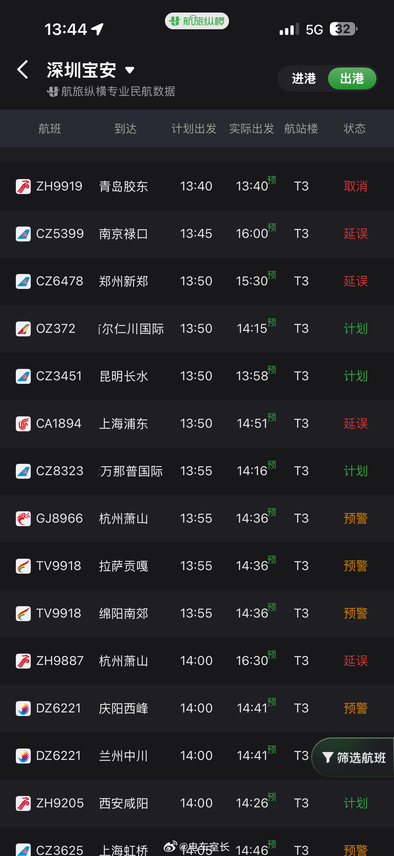 深圳机场、广州机场大规模延误我们是早上8.15的飞机正常起飞了后面十点过后的至少
