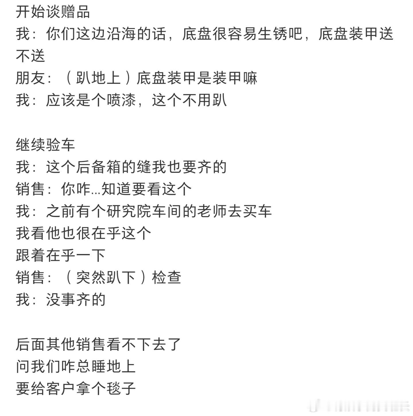 陪朋友买车全程趴在地上