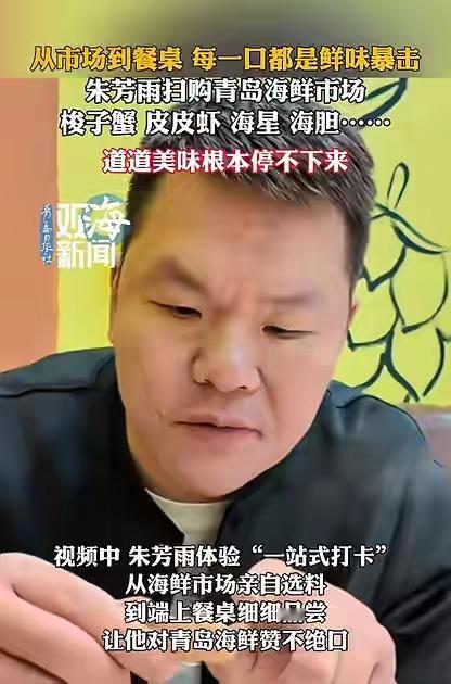 视频发布后迅速登上热搜,获近十万点赞,“夯爆了”成热词,顺带也带火了青岛海鲜市场,不少游客专程打卡朱芳雨同款海鲜路线。