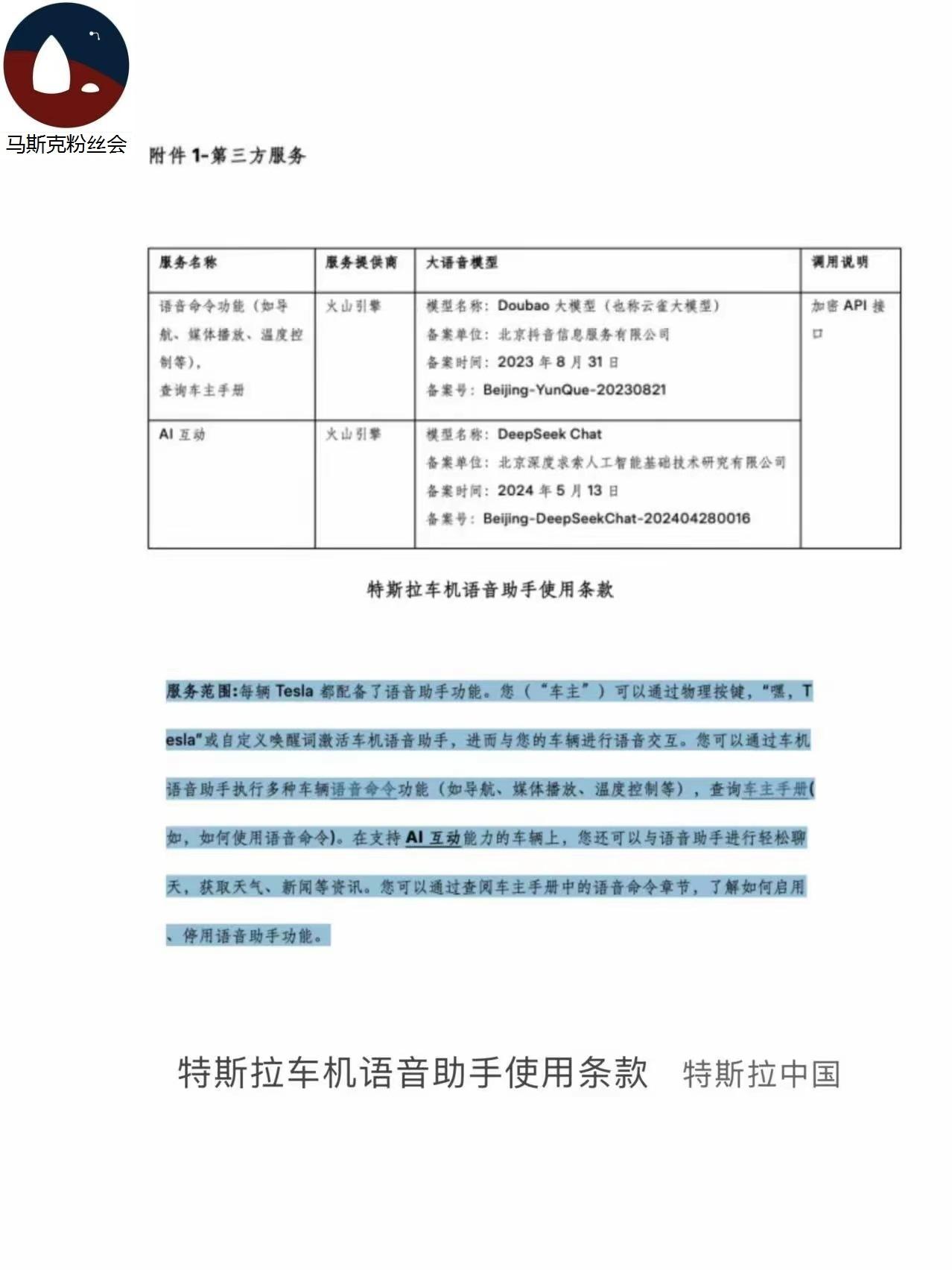 特斯拉提交了车载语音大模型服务的备案。 但是现在连的是豆包和deepseek哦。