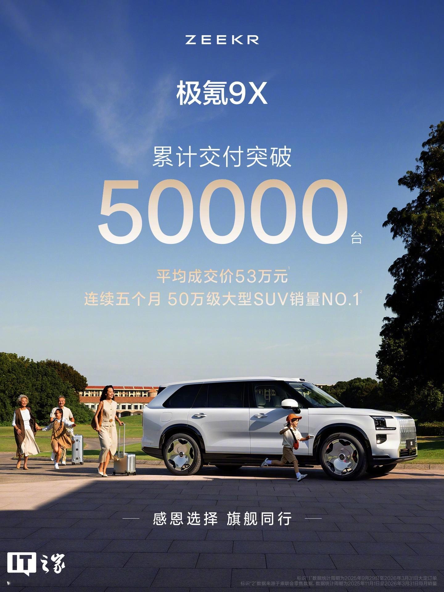 【平均成交价 53 万,极氪9X累计交付突破5万】极氪汽车今日宣布,极氪 9X 累计交付突破 5 万。