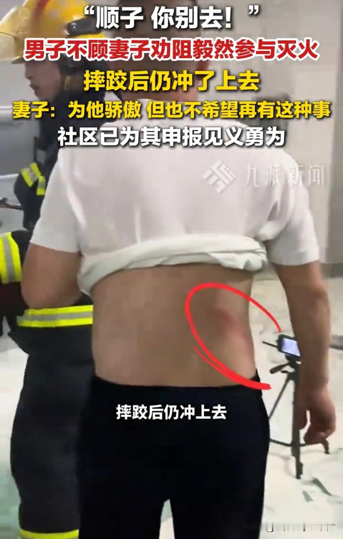 相比于丈夫的淡然,妻子的内心却久久不能平静,她坦言:“看到丈夫不顾危险冲进火场,甚至摔倒的那一刻,自己的心都提到了嗓子眼,全程吓得浑身发抖,满脑子都是担心,生怕他出现一点意外。”