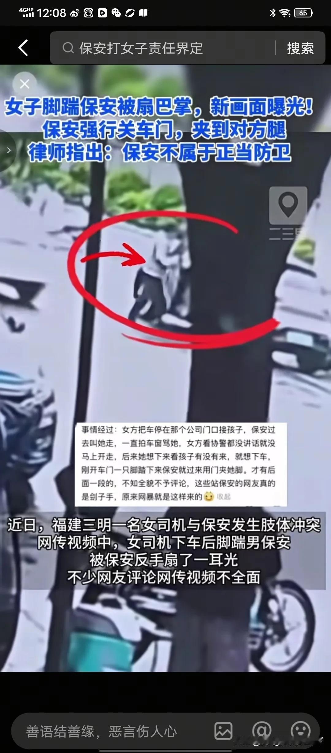 也就是说,整件事根本不是女车主无端先动手,而是保安全程没有控制住自己的情绪,从辱骂、拍车门,到故意夹人,一步步激化矛盾,最终才引发了后续的暴力冲突。他的掌掴行为,也绝非正当防卫,而是情绪上头后的报复性殴打。