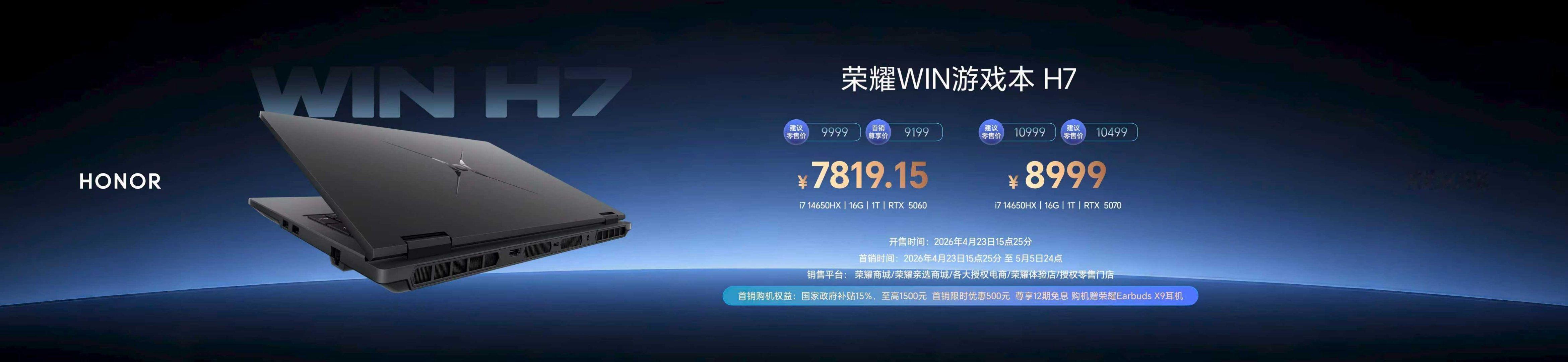 同价位真的找不到比荣耀更良心的了!游戏本WIN H7 7819.15元起,21m
