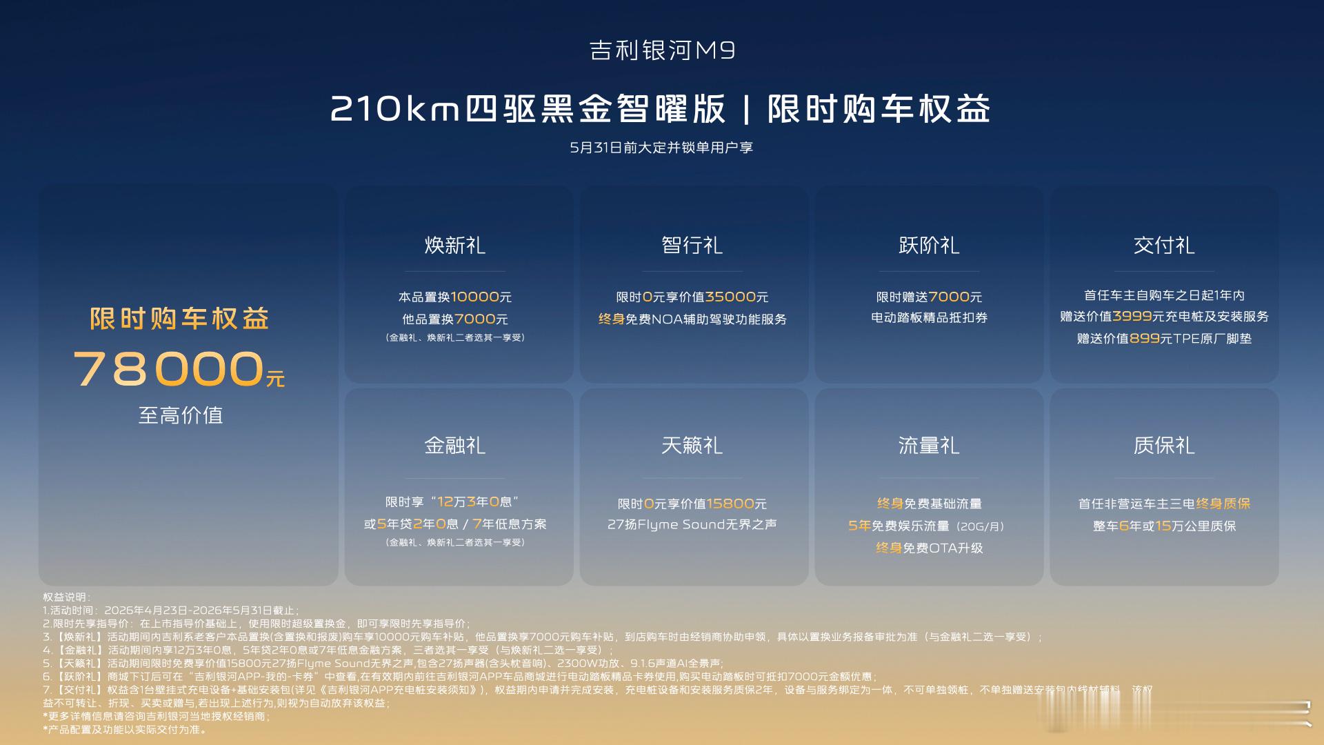 吉利银河M9 黑金智曜版,限时先享指导价25.98万元。