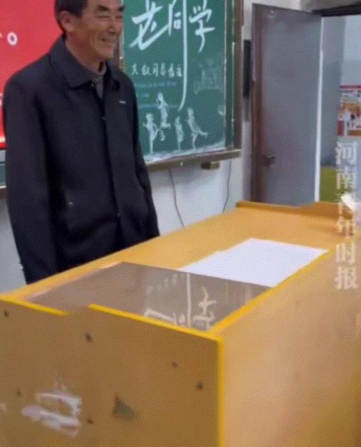 一群老人回到旧教室,对着八十多岁的老老师一起喊出那句迟到了五十年的“老师好”,声音虽然沙哑但很整齐,像一下又回到了当年上课的那一刻。