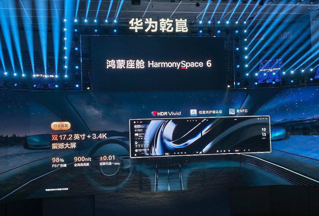 华为乾崑在鸿蒙座舱 6 上发布双 17.2 英寸 + 3.4 K 的规格。具备 98% P3广色域 以及 900 nit 全局高亮度,另外 ±0.01 双屏色温一致性。这屏幕真不比目前市面上的高规格桌面级显示器差。