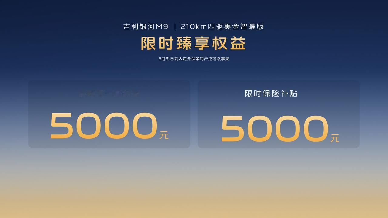 【限时售25.98万元,吉利银河M9黑金智曜高定版上市】4月23日,吉利银河M9黑金智曜高定版正式上市,共推出1款车型,售价26.98万元,限时售25.98万元。外观方面,新车核心辨识度来自“玄夜鎏金”专属双色车漆,以深邃黑色为基底,搭配精致玫瑰金细节点缀,冷暖碰撞尽显专属豪华气质。同时配备21英寸六芒星逐光专属轮圈,金色中心盖与黑金主题呼应。尺寸方面,其长宽高为5205/1999/1800mm,轴距3030mm。内饰方面,新车延续了银河M9的核心布局,配备12.66英寸全液晶仪表与30英寸贯穿式触控屏,搭载Flyme Auto 2.3智能座舱系统,可支持3D全场景导航与AR-HUD车道级导航。核心升级集中在配色与材质,专属星云红高定配色搭配“星河浅浪”门板饰纹,加上翻毛皮质感的柔云顶棚,触感舒适。智能化是本次升级重点,新车搭载700TOPS算力的Thor-U芯片,配备千里浩瀚H7辅助驾驶系统与AI BOX超级智脑,配合31个感知元件,可实现无图城市NOA等全场景领航,同时还提供多项主动AI Agent服务,覆盖安全提醒、熟人迎宾等多个日常使用场景。动力方面,新车延续了系列车型的插电混动布局,具体动力参数有待车展发布会正式揭晓。【来自懂车帝车友圈】