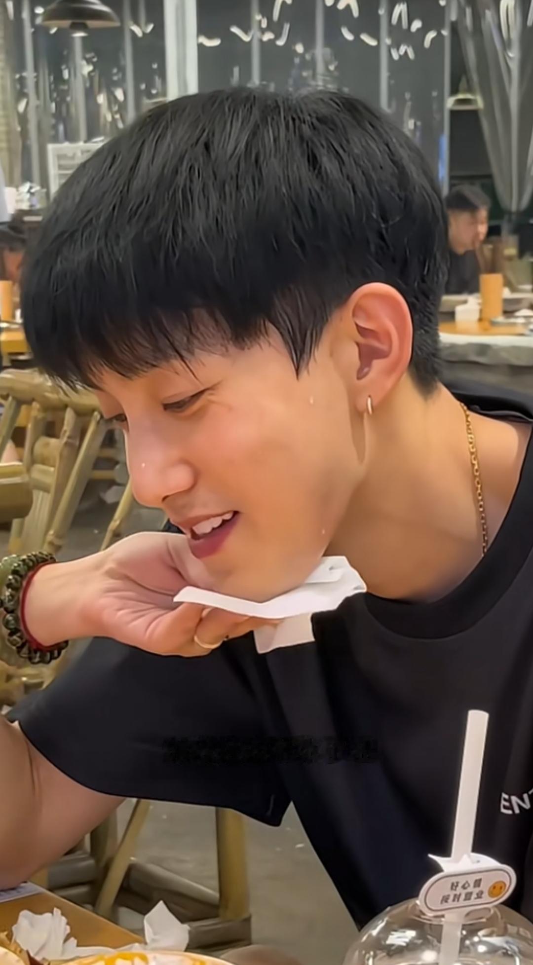 范世琦 之前发过一次吃火锅瀑布汗的视频,网友说不知道是心虚还是体虚。