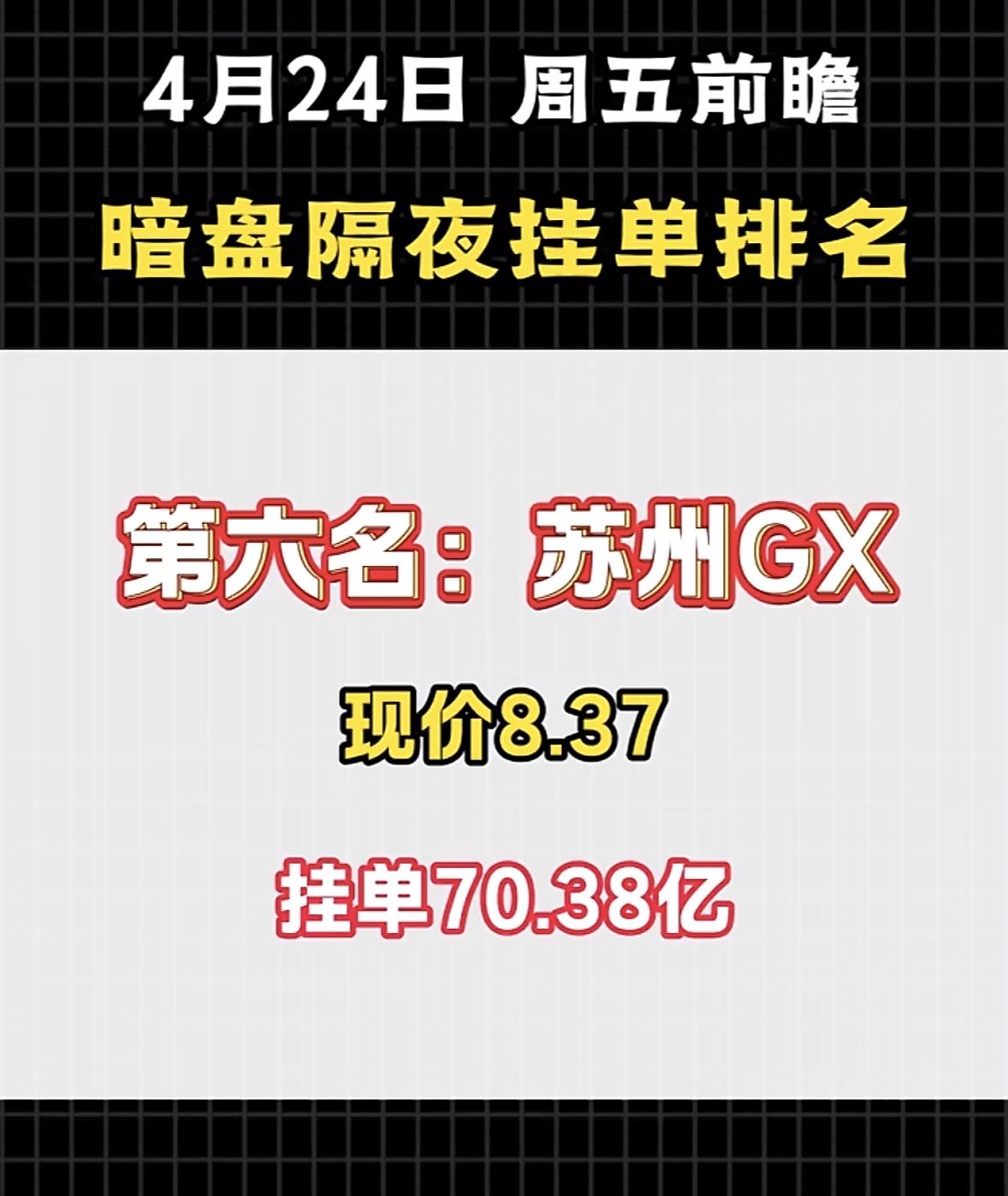 4月24日周五暗盘挂单数据一揭晓,