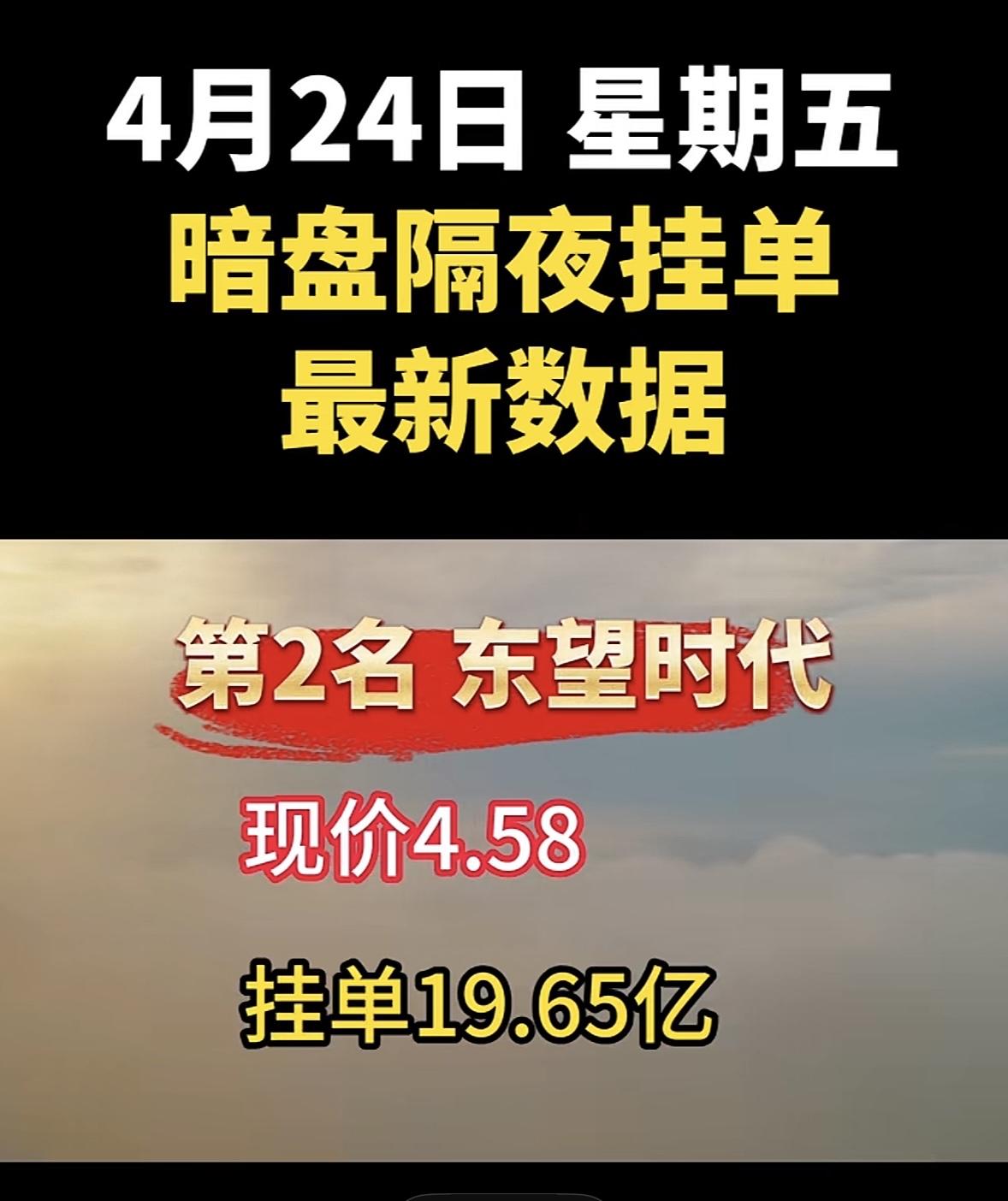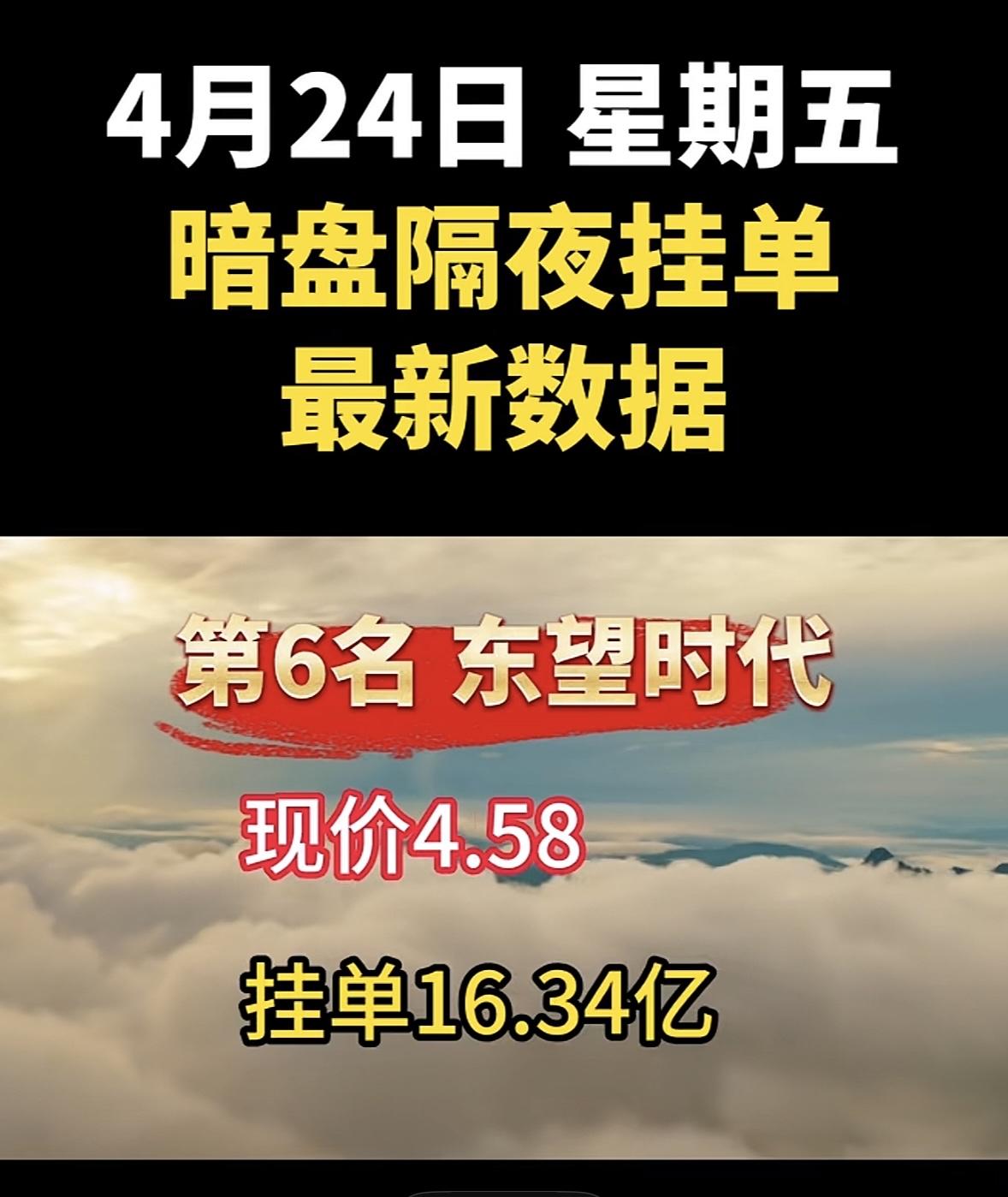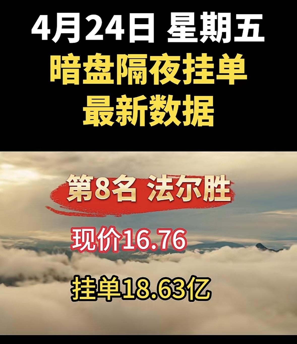 4月24日周五暗盘隔夜挂单排行榜揭晓