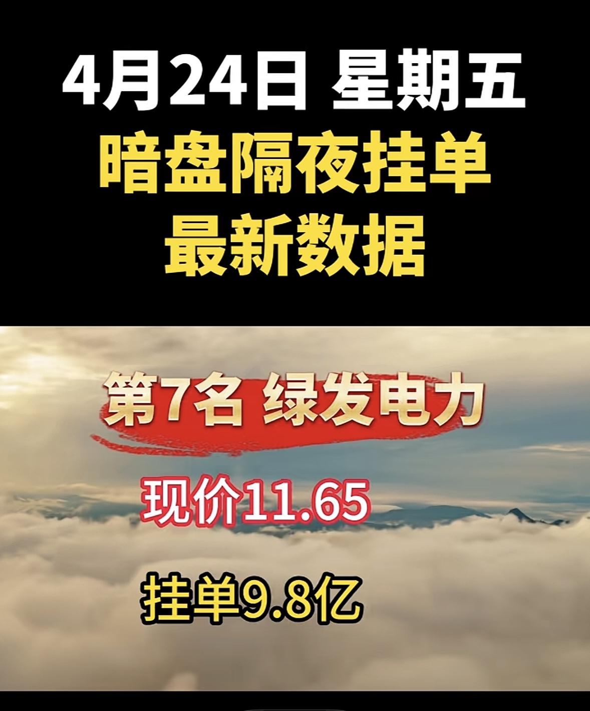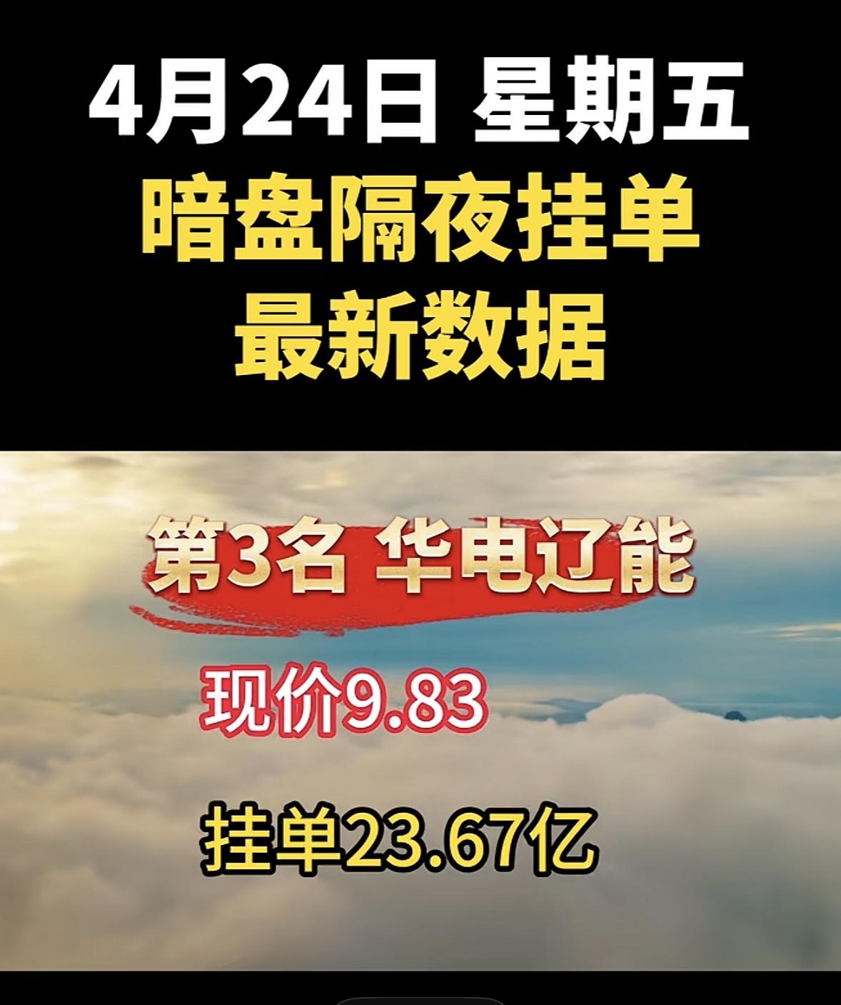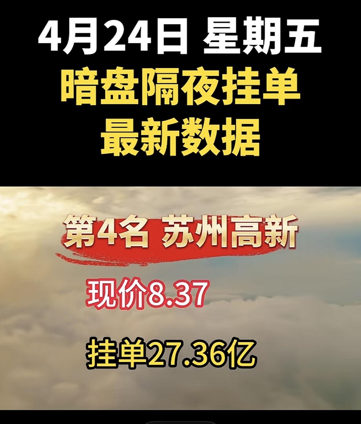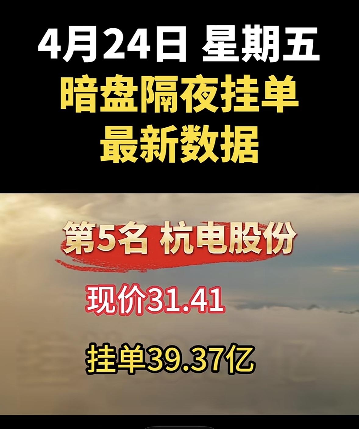 4月24日周五暗盘隔夜挂单排行榜揭晓