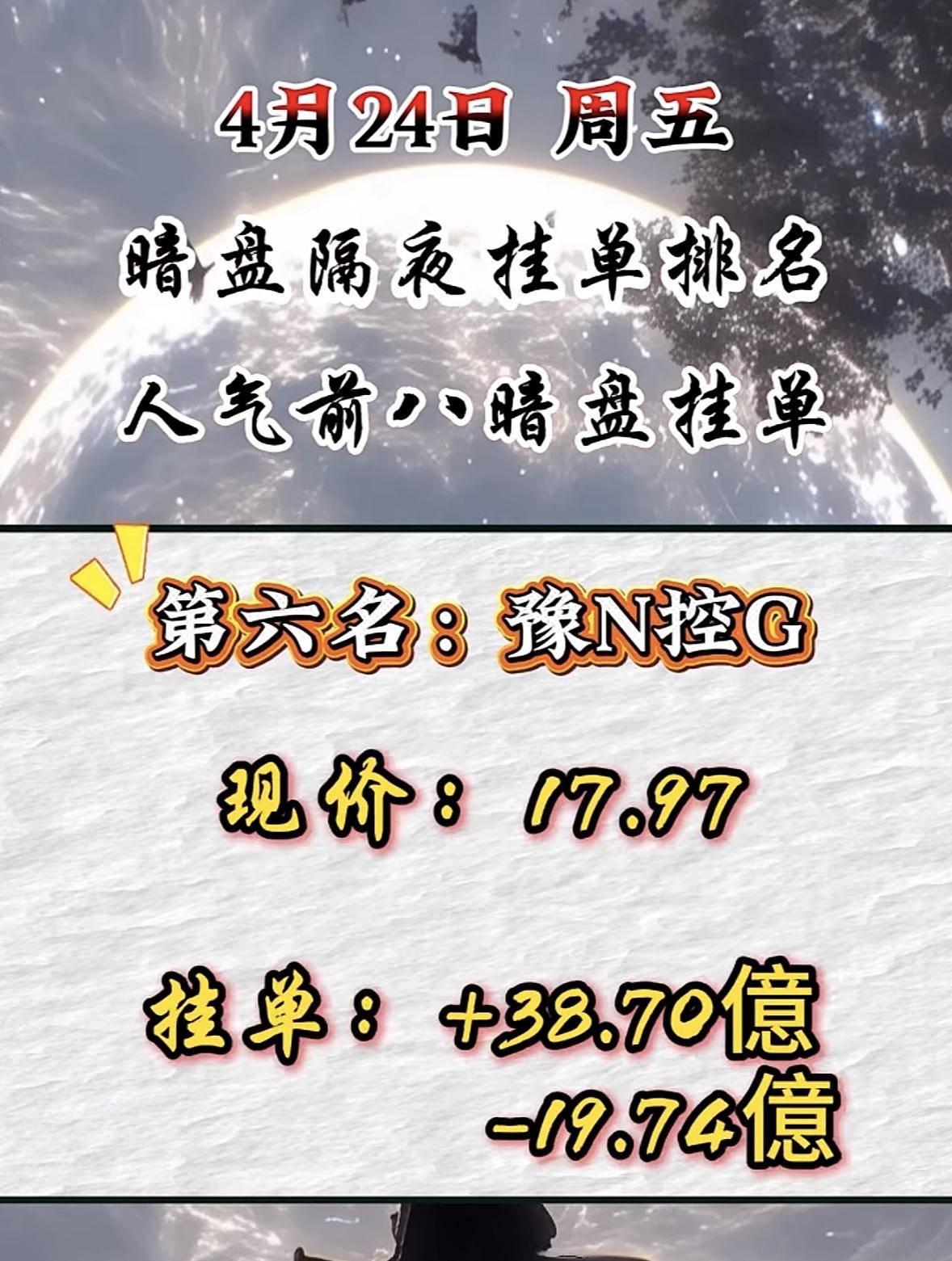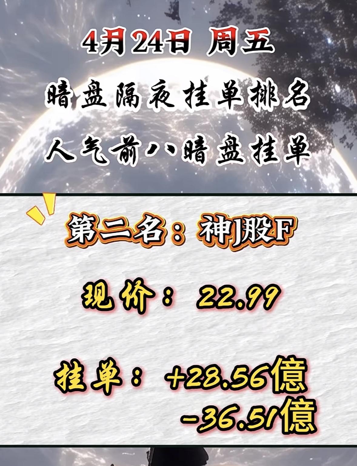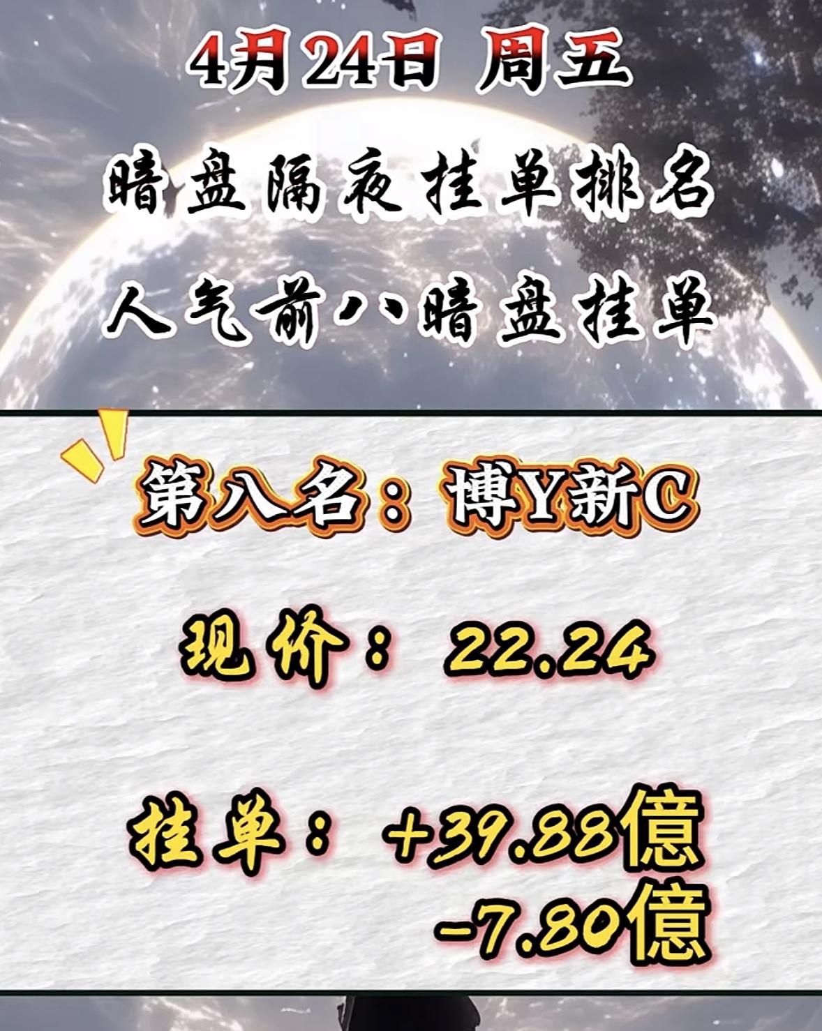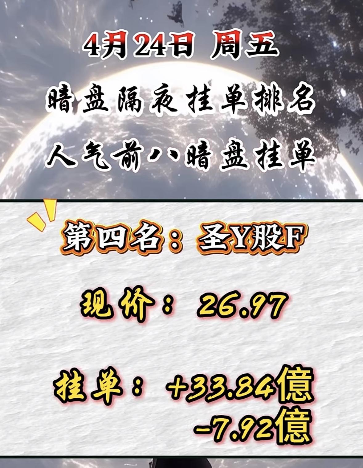 4月24日周五暗盘隔夜挂单排行榜数据揭晓