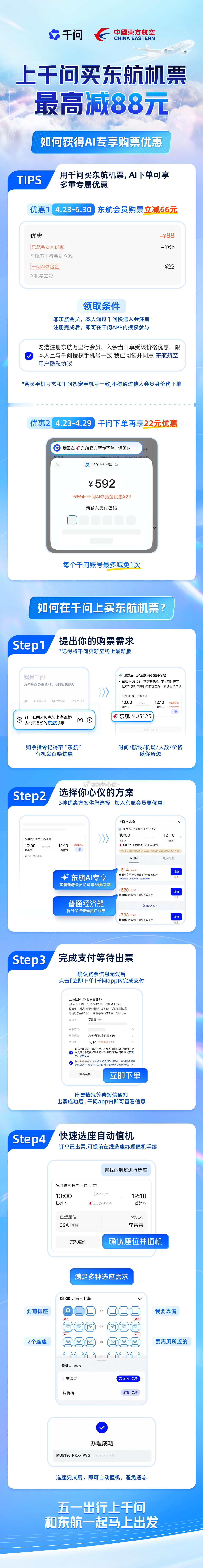 用千问AI订机票真的很智能情侣出行订票总吵架?用千问查东航航班,同步双方需求,优惠权益一目了然,一键购票最高立减88元,省心又省钱。