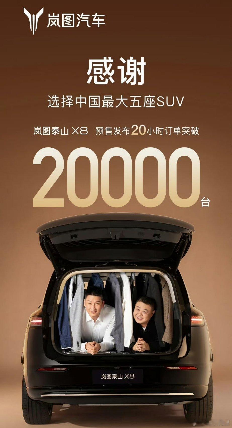 岚图泰山X8预售20小时订单突破2万台4月23日,岚图汽车官方消息,岚图泰山