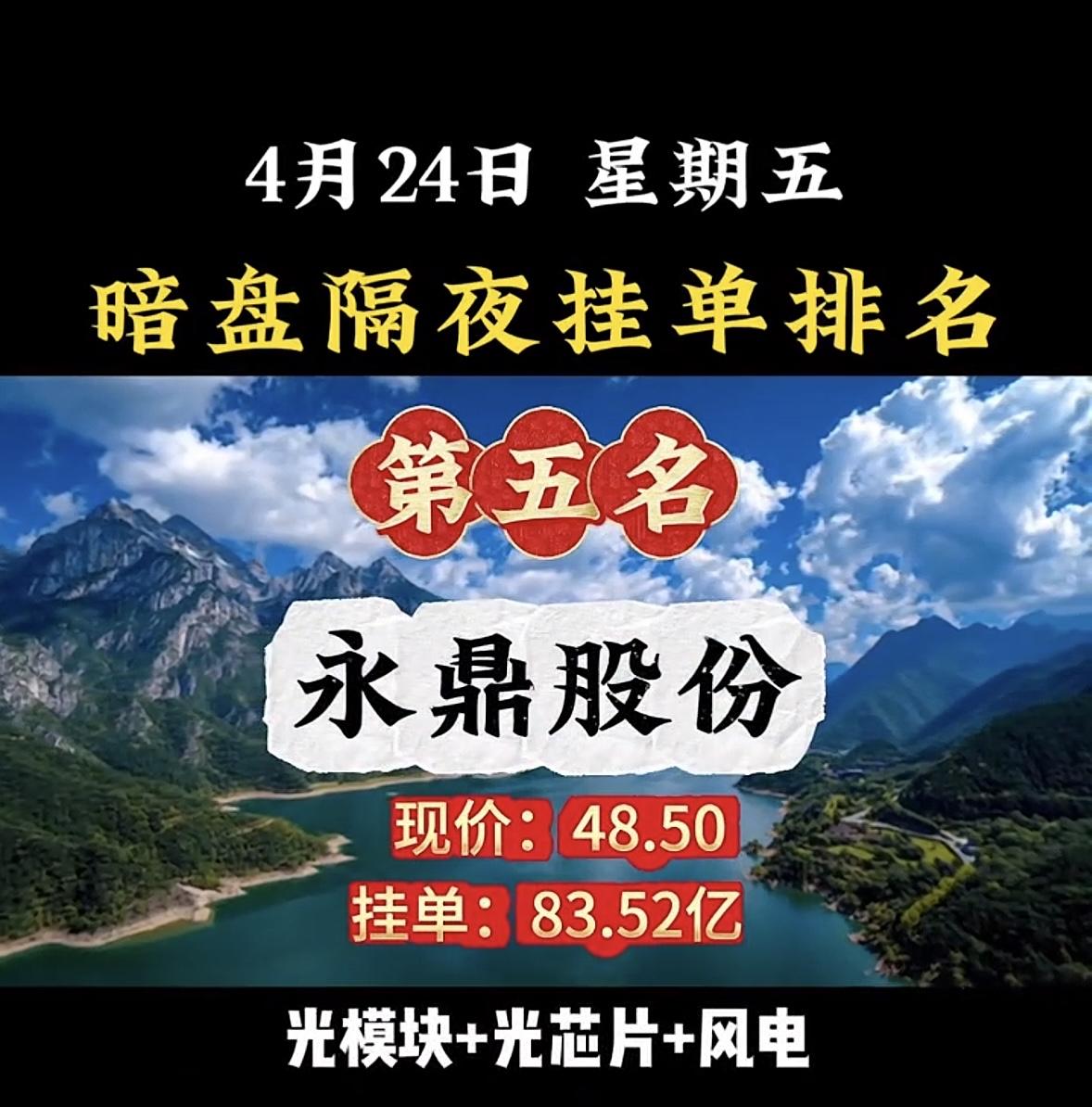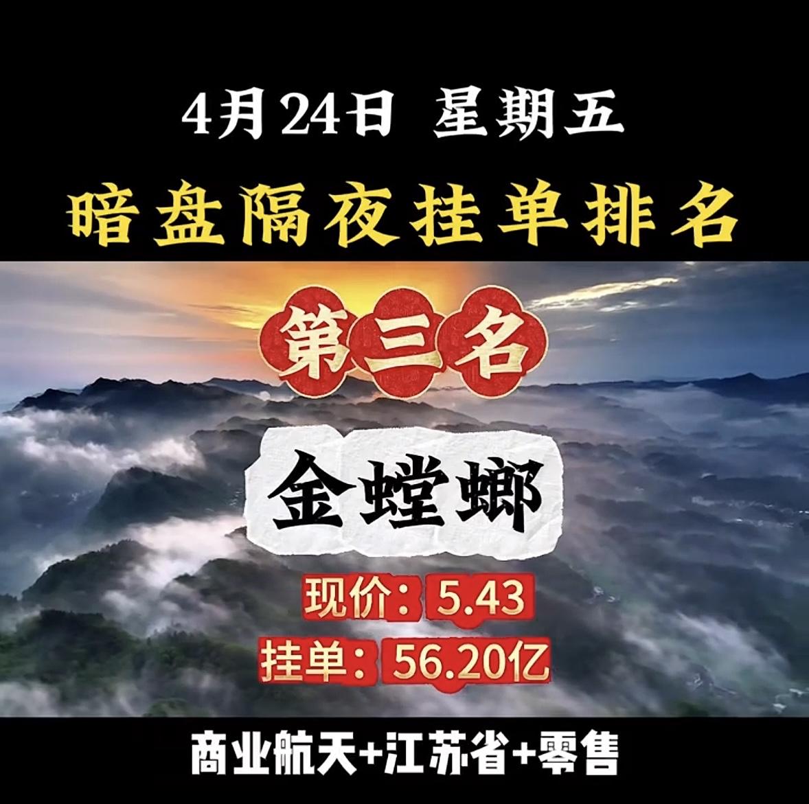 4月24日周五暗盘隔夜挂单排行榜揭晓
