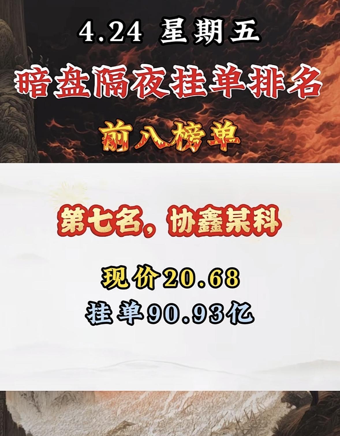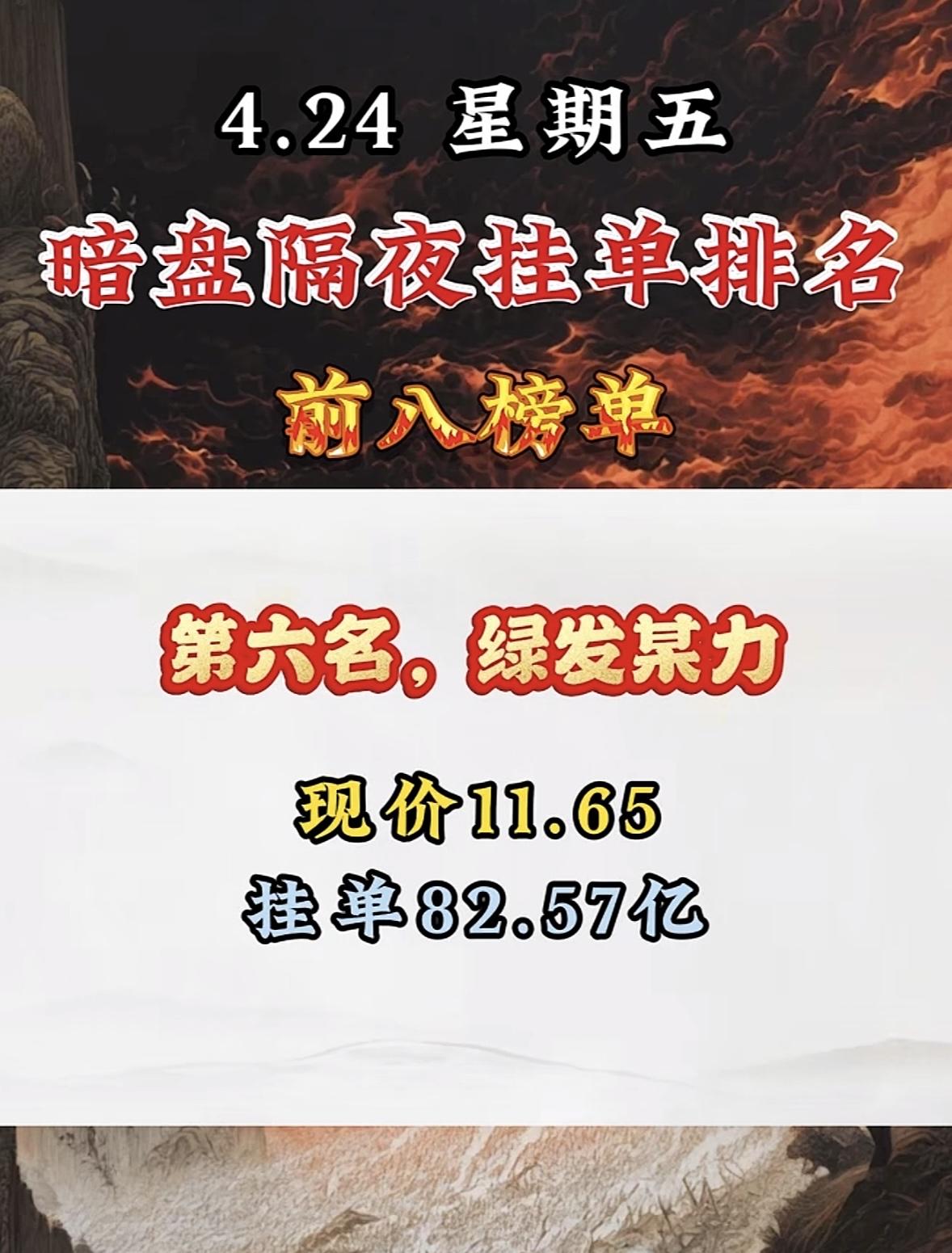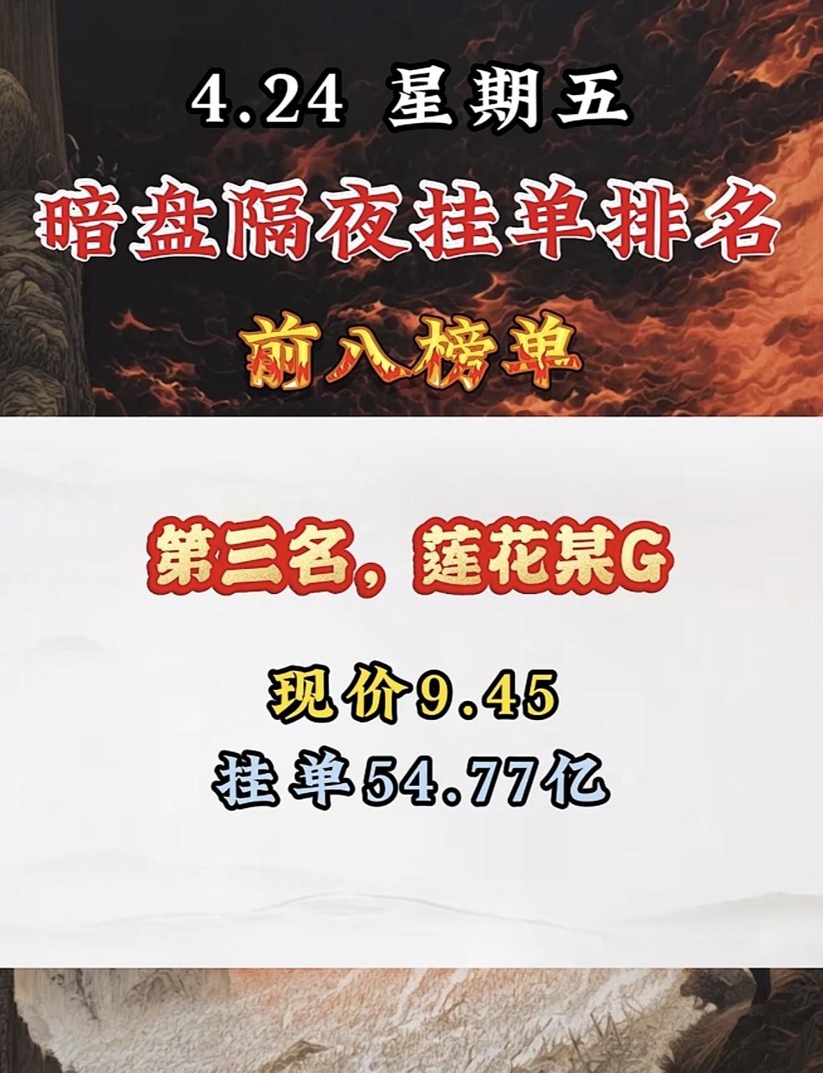 4月24日周五暗盘隔夜挂单排行榜数据揭晓