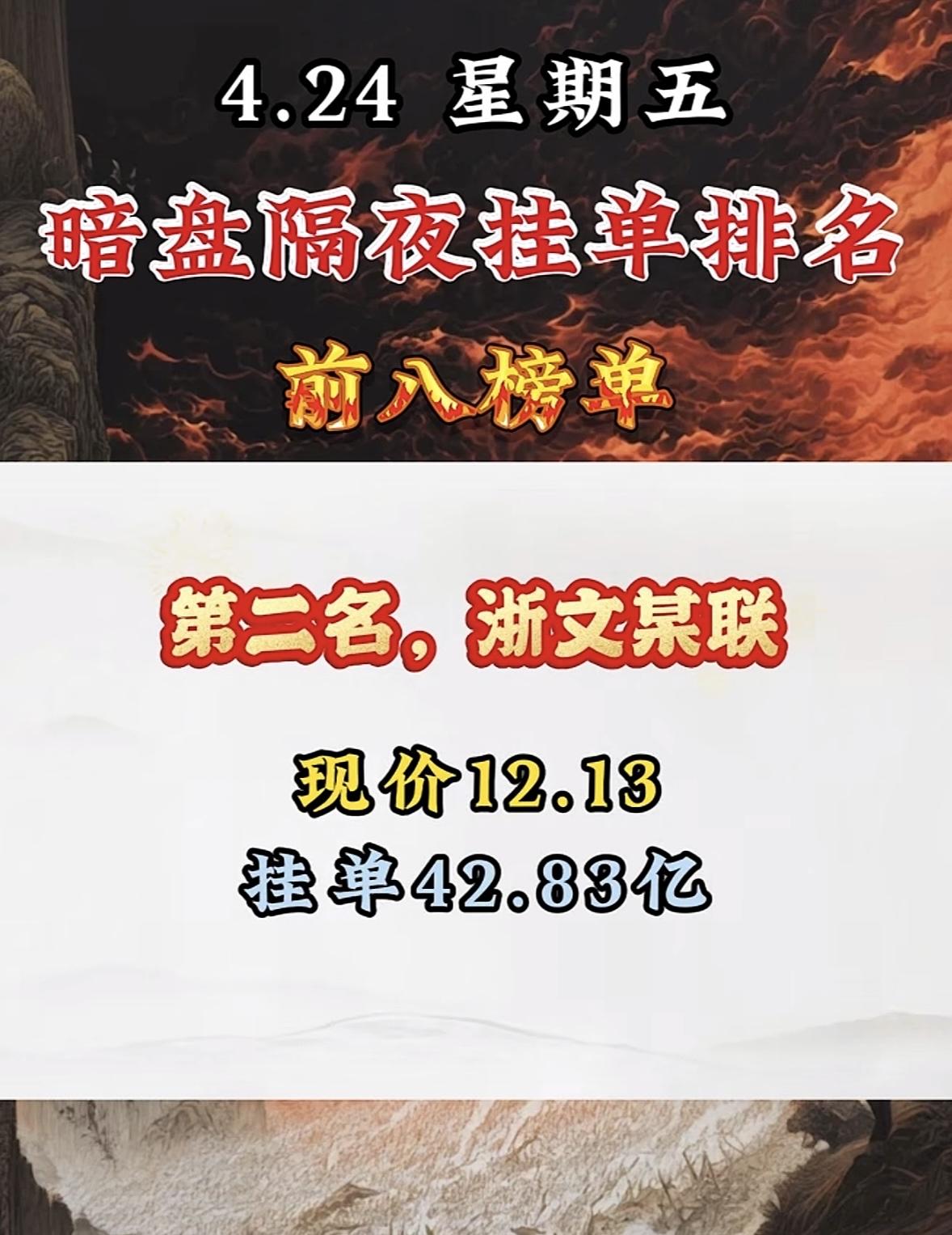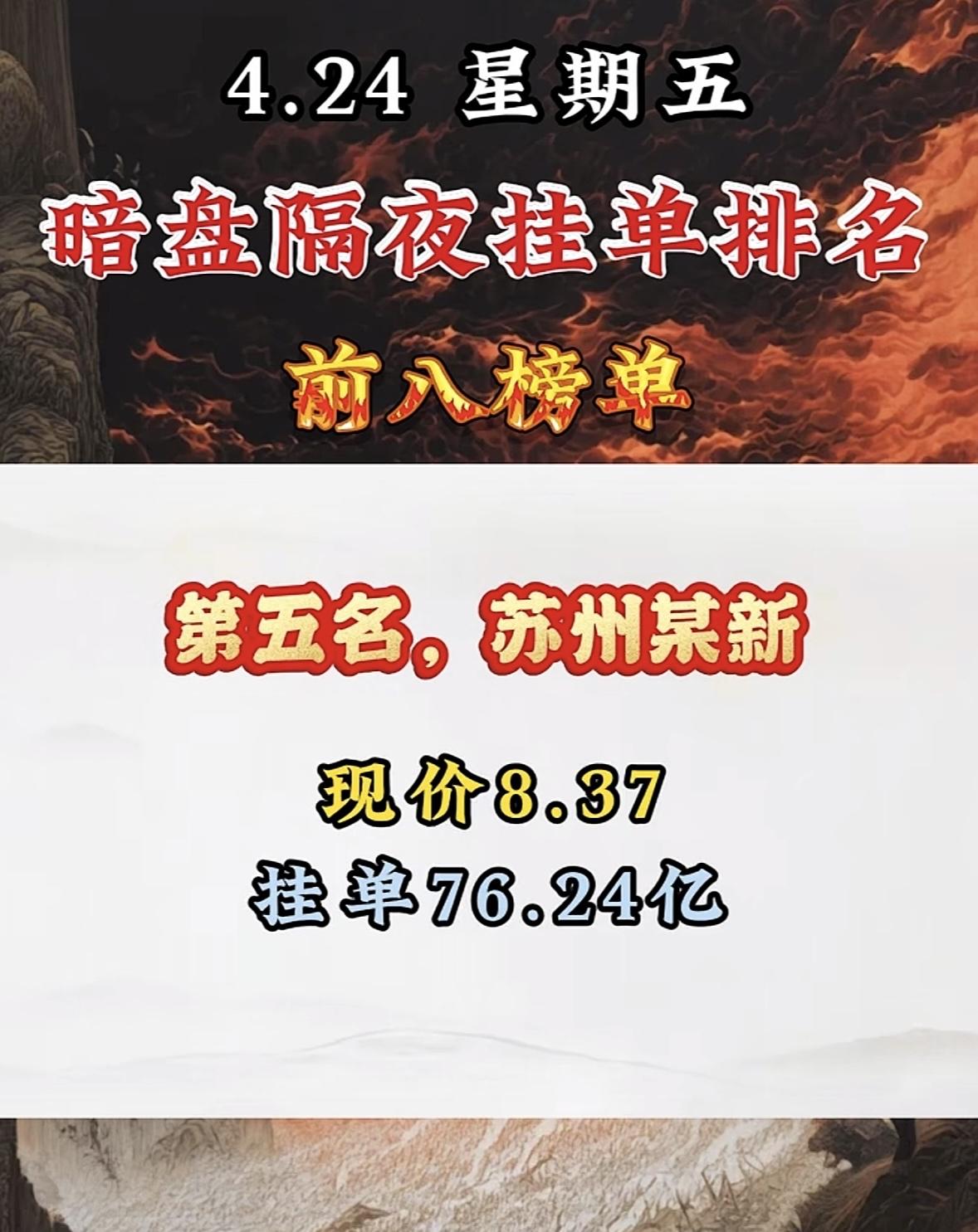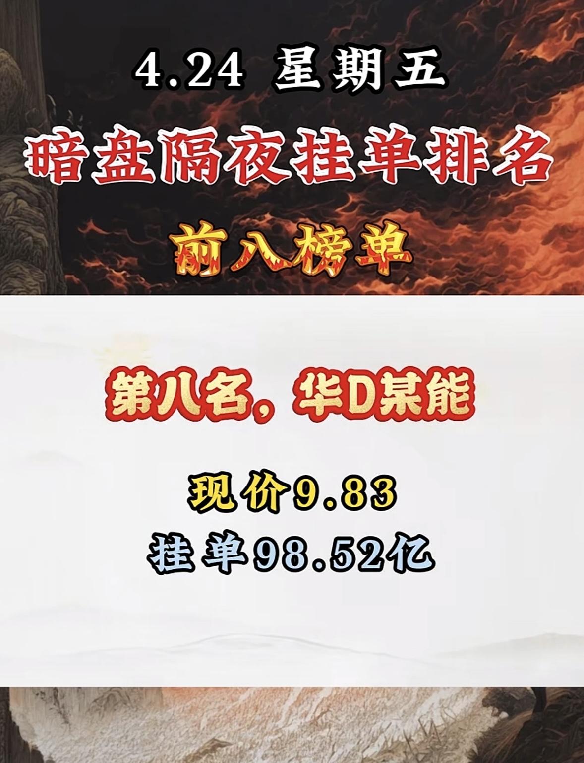 4月24日周五暗盘隔夜挂单排行榜数据揭晓