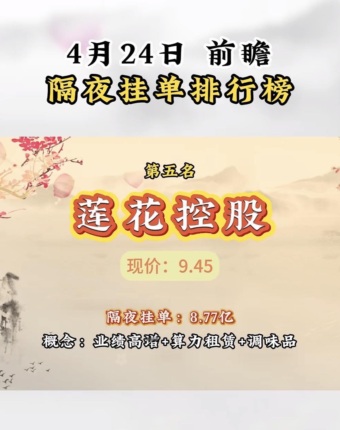 4月24日周五暗盘隔夜挂单排行榜数据揭晓