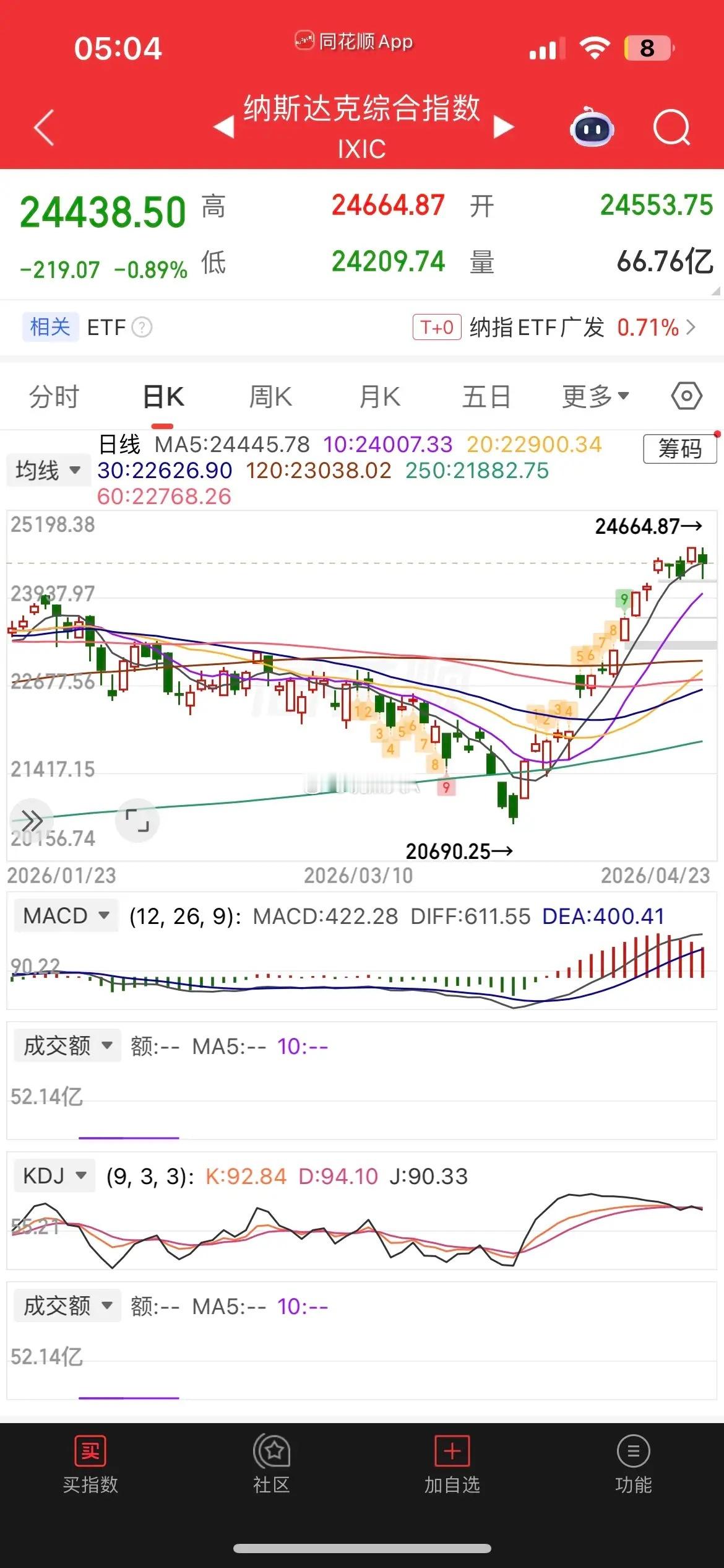 昨晚美股三大指数全线收跌,道指跌0.36%,纳指跌0.89%,大型科技股普跌,费城半导体涨超1%,英伟达、台积电跌逾1%,阿斯麦跌近2%,特斯拉大跌超3%,甲骨文大跌近6%,AMD涨0.6%,英特尔涨超2%,美光科技跌逾1%,闪迪大跌近5%,西部数据大涨超3%,这样看今天科技股开盘估计会继续承压,关键还得看银行股表现。