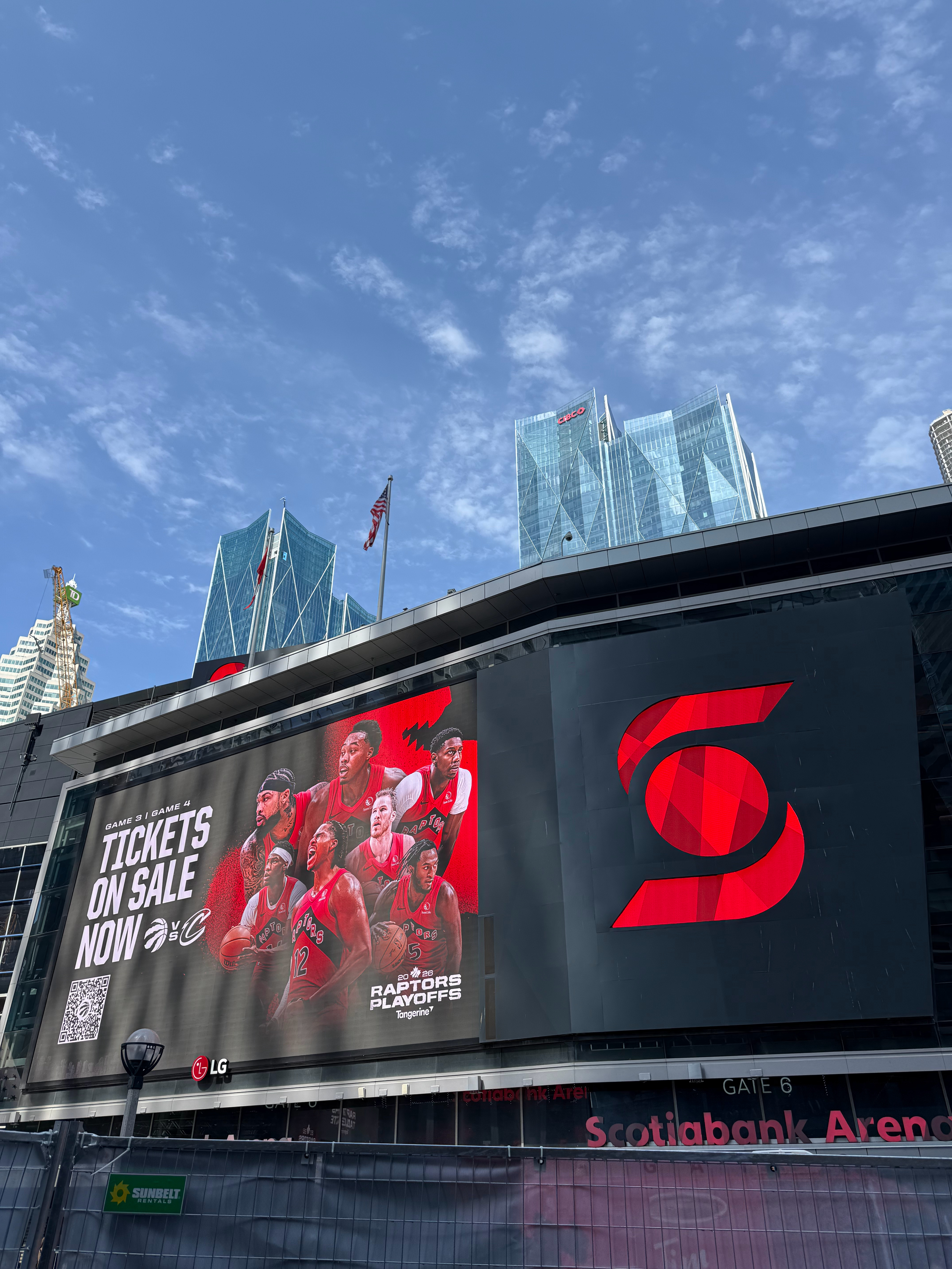 篮天下 猛龙队季后赛主场户外大屏广告,五秒滚动一次,站了一会儿就十几个广告了,职业体育的商业化咱们还差多远? 加拿大·多伦多