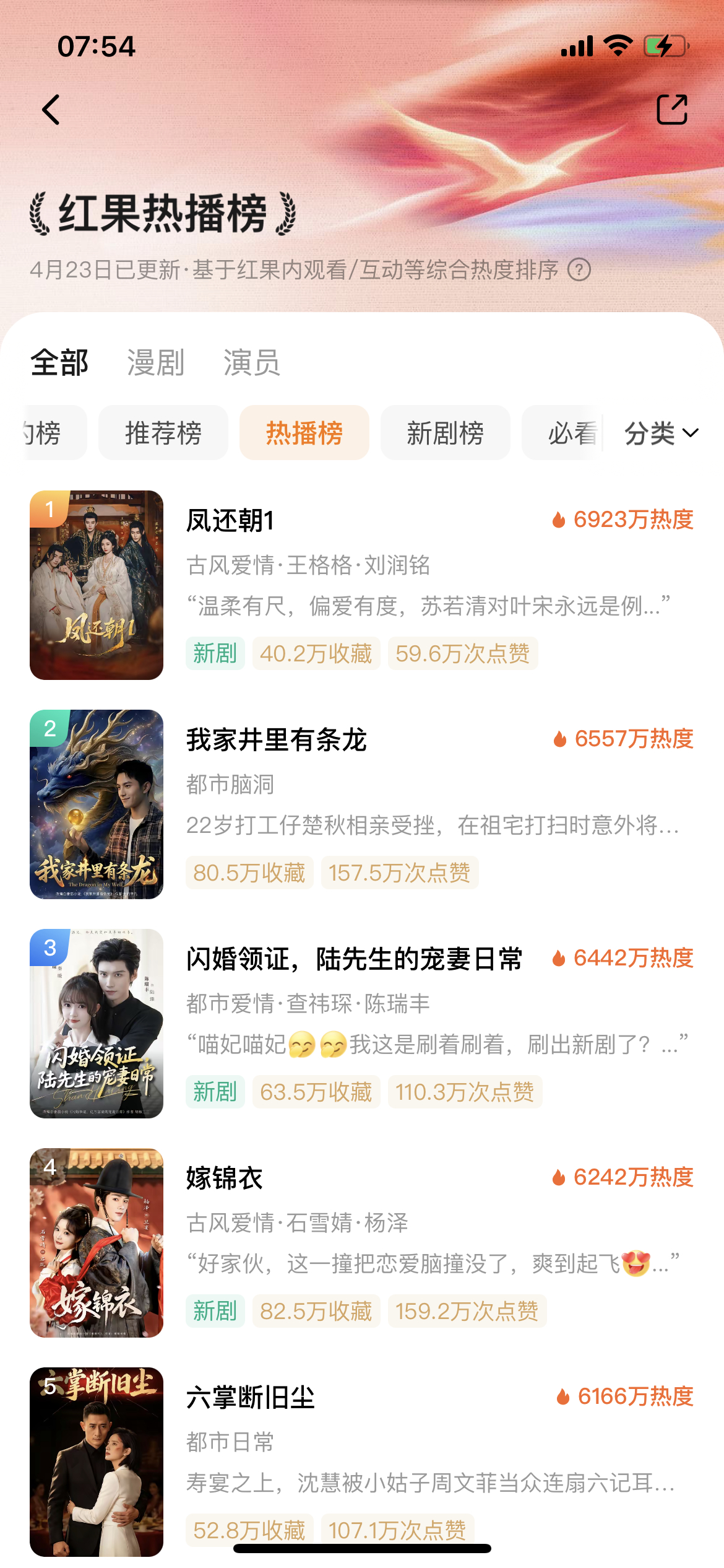 4.24红果热播榜,虽然王格格(100万粉)和刘润铭(115万粉)双头部没有破7000数据不算多好看,但也成功阻断AI男频持续霸榜,毕竟刘宇航和六金“先婚后爱”只开了5729。《凤还朝》很多人说“虐女”憋屈,这词我常从演员嘴里听到,但有木有这是“女性真实处境”呢?“虐女”有市场,不可能部部女强。