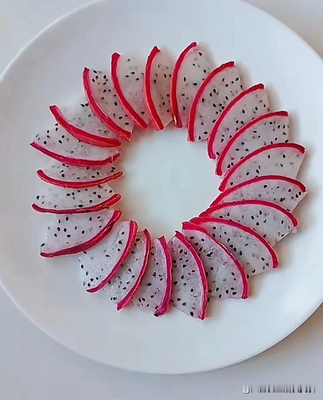 ③最后将火龙果片围着盘子边缘依次摆入,接着将砂糖橘摆入中间,也可以摆成自己喜欢的造型,这样就完成了。