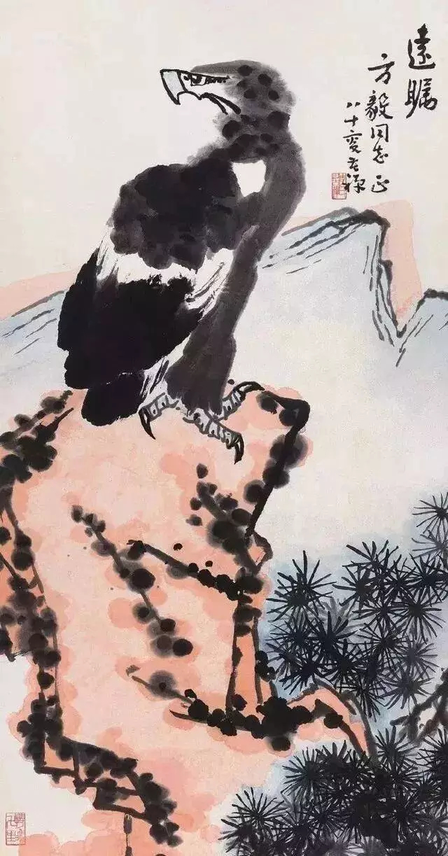 李苦禅(1899- 1983),生于山东省高唐县贫苦农家,自幼受到家乡传统文化之熏陶,走上了艺术征途。现代书画家、美术教育家。原名李英杰,改名英,字励公。山东高唐人。1923年拜齐白石为师。曾任杭州艺专教授,中央美术学院教授,中国美术家协会理事,中国画研究院院务委员。擅画花鸟和鹰,晚年常作巨幅通屏。这就是中国风遇见艺术