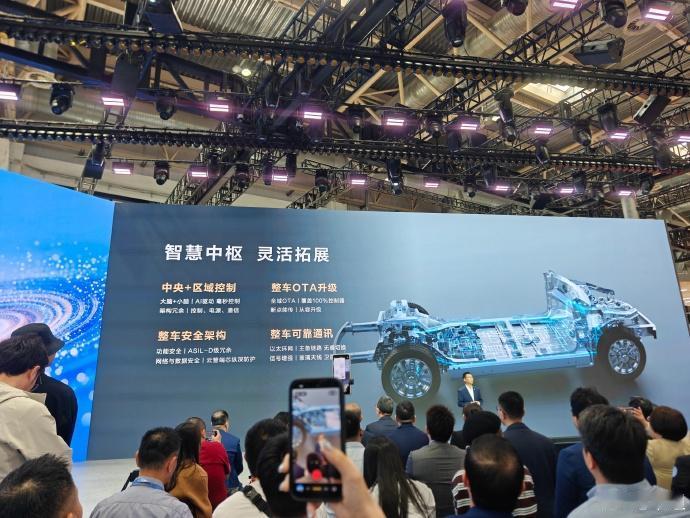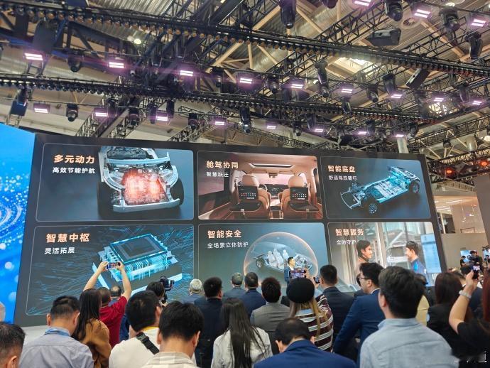 今天问界展台的主角可能不是刚上市的问界M6,也不是正在预售的问界M9,而是赛力斯魔方技术平台。