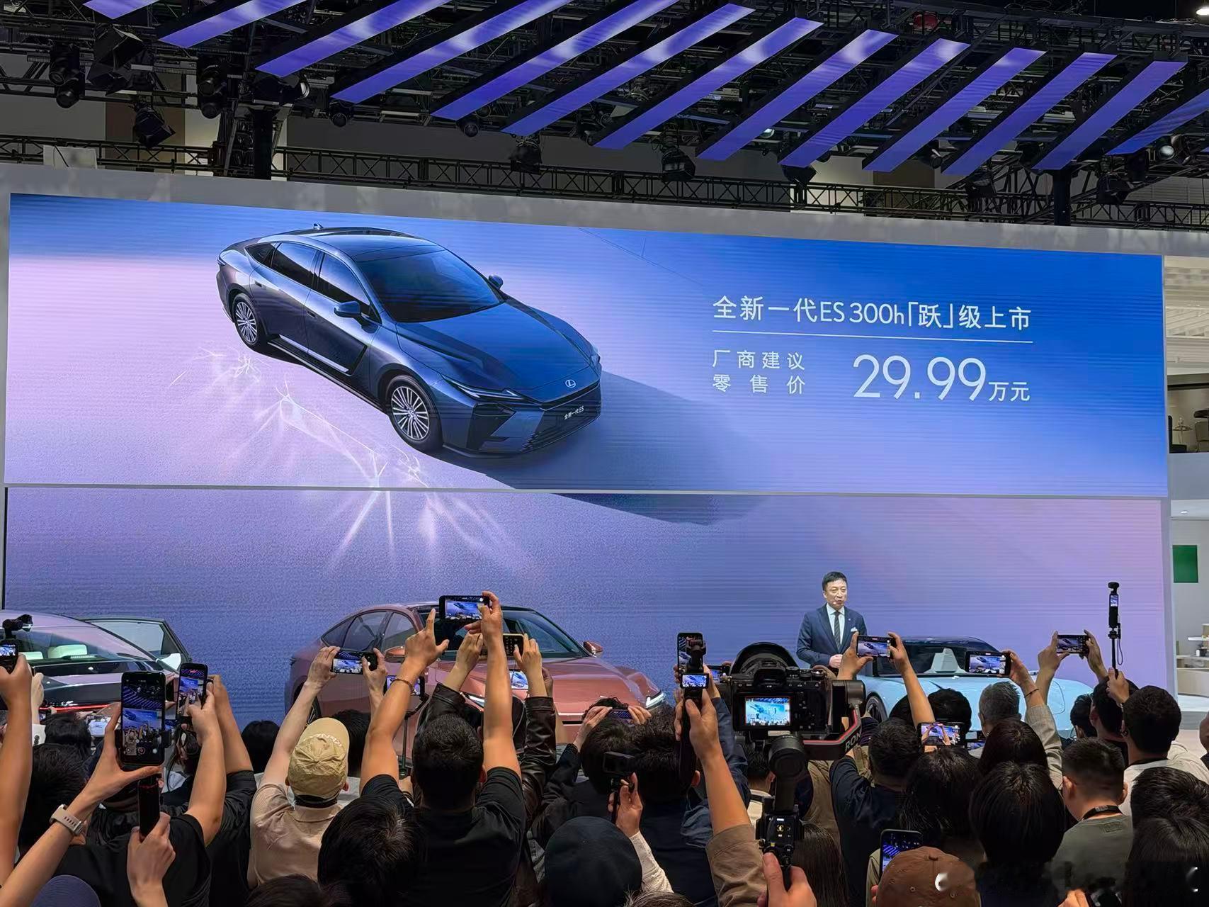 胖哥汽车频道2026北京车展 全新一代雷克萨斯ES上市,官方指导价29.99万元,目前仅推出一款2.0L混动车型。作为换代产品,新车在设计、配置和动力上均有更新。>外观方面,新车采用了“Clean Tech x Elegance”设计语言,弱化了标志性的纺锤形格栅,转而使用封闭式前脸搭配梯形通风口,整体风格更简洁、现代。贯穿式尾灯和可点亮的LOGO也提升了辨识度。>内饰部分,延续了雷克萨斯一贯的东方豪华美学,保留了竹纹透光饰板,并首次引入“竹韵香氛系统”。车内配备14英寸中控屏,可选装副驾娱乐屏,并大量采用触控按键以营造简约氛围。>配置上,新车提供了包括前排座椅加热/通风、方向盘加热、HUD抬头显示、马克莱文森音响以及L2级驾驶辅助等主流豪华配置。>动力系统是本次换代的一大变化,新车搭载由2.0L发动机(112kW)与电机(83kW)组成的混动系统,综合功率145kW,匹配E-CVT变速箱。值得注意的是,未来还将推出纯电动版本。>此外,老款ES200车型将继续销售,与新款形成高低搭配。雷克萨斯es
