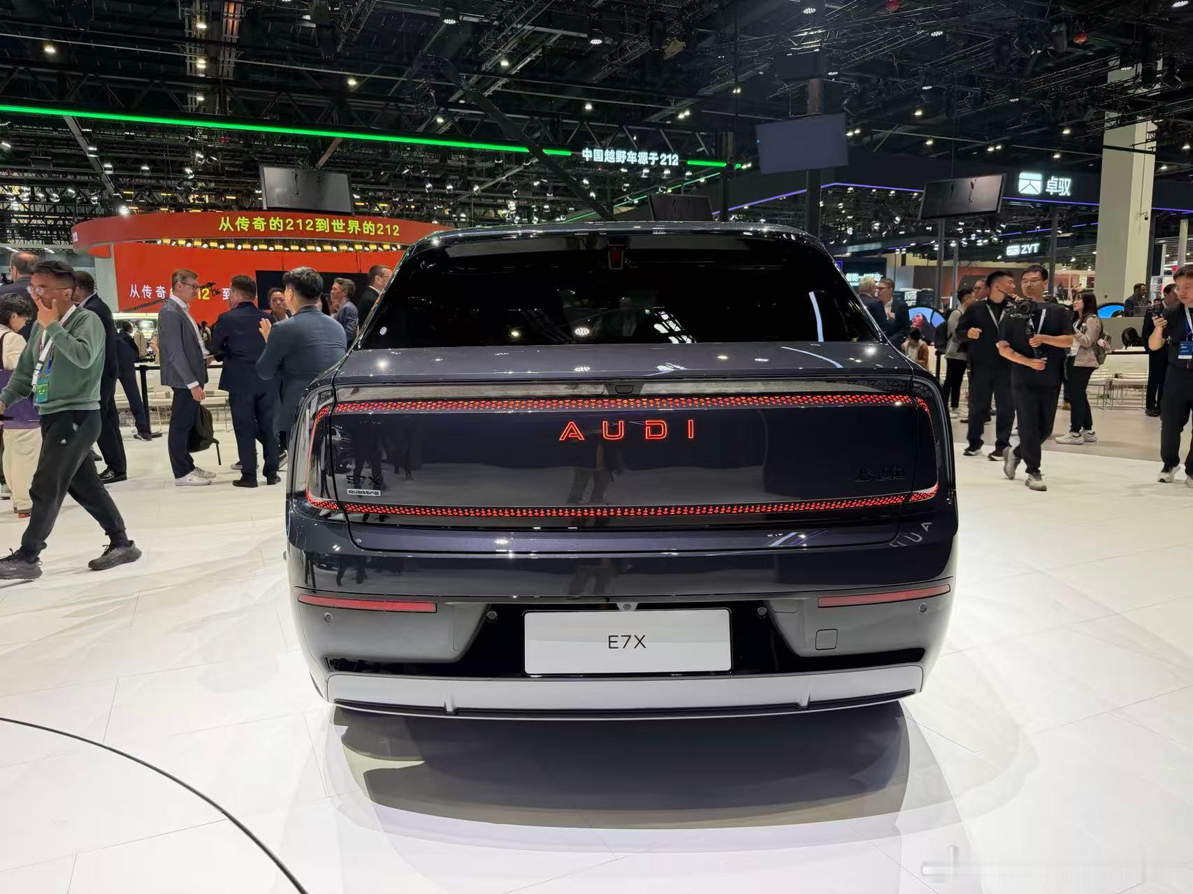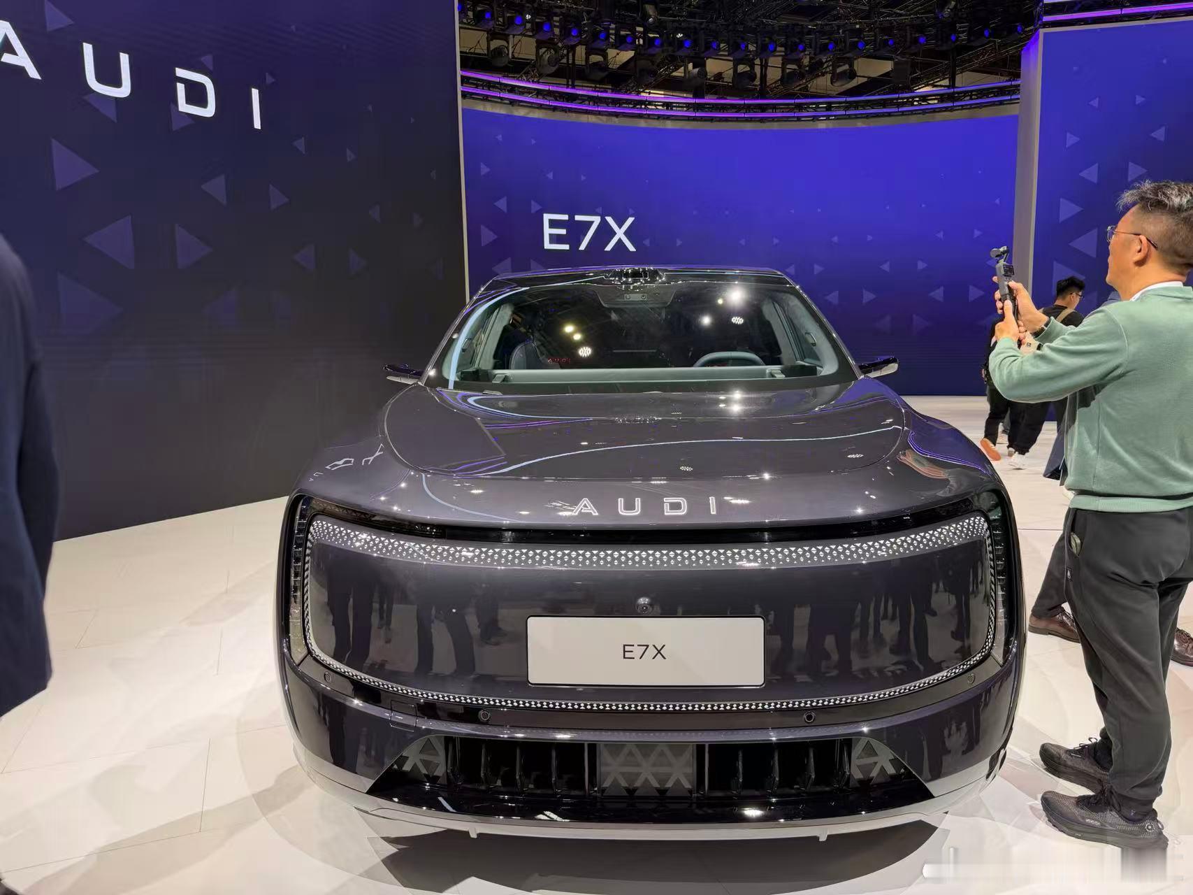 胖哥汽车频道2026北京车展 上汽奥迪正式首发了其第二款产品——奥迪E7X。设计方面,E7X延续了奥迪家族式设计语言,但更具未来感。前脸采用点阵环绕式灯带和竖向布置的数字矩阵式LED大灯,营造出强烈的科技氛围。车身尺寸为5049/1997/1710mm,轴距达到3060mm,空间客观。动力方面,新车提供单电机后驱(300kW)和双电机四驱(500kW)两种动力版本。电池方面,配备100kWh和109.3kWh两种容量的三元锂电池。根据不同的配置组合(如轮圈尺寸等),CLTC工况下的续航里程覆盖了从615km到751km的多个版本。大V聊车