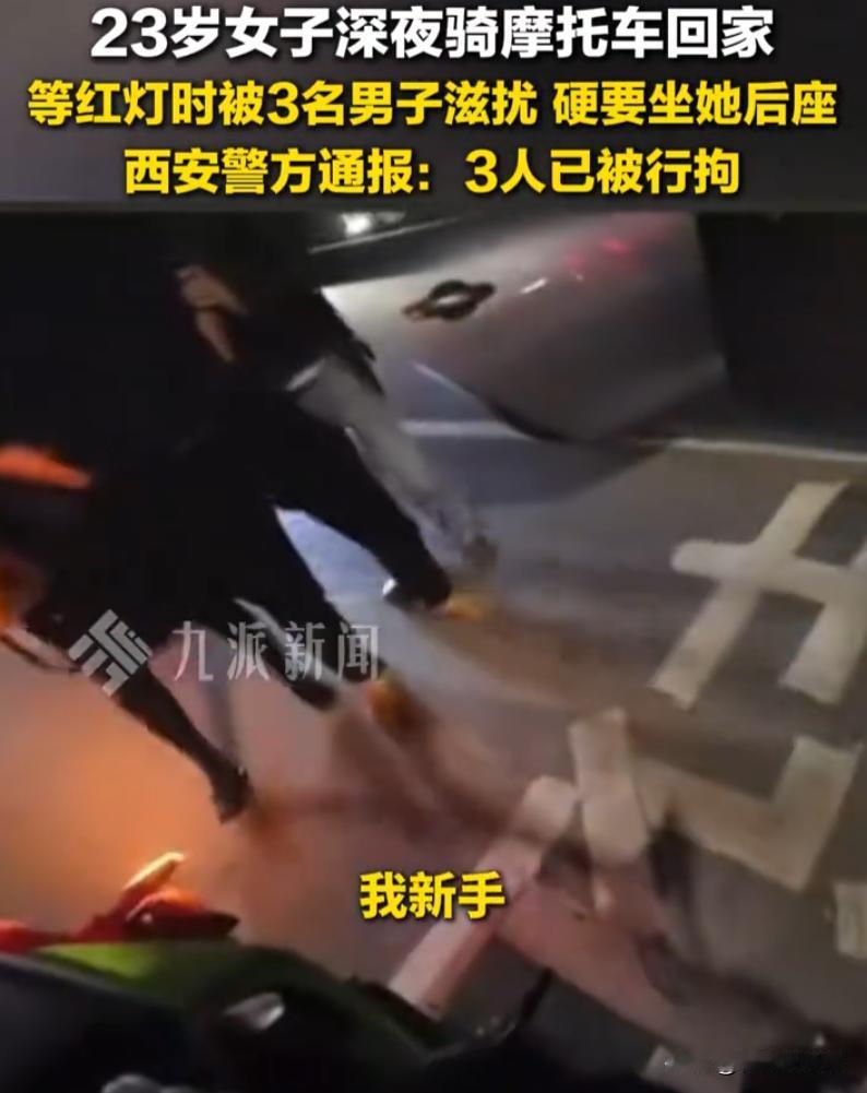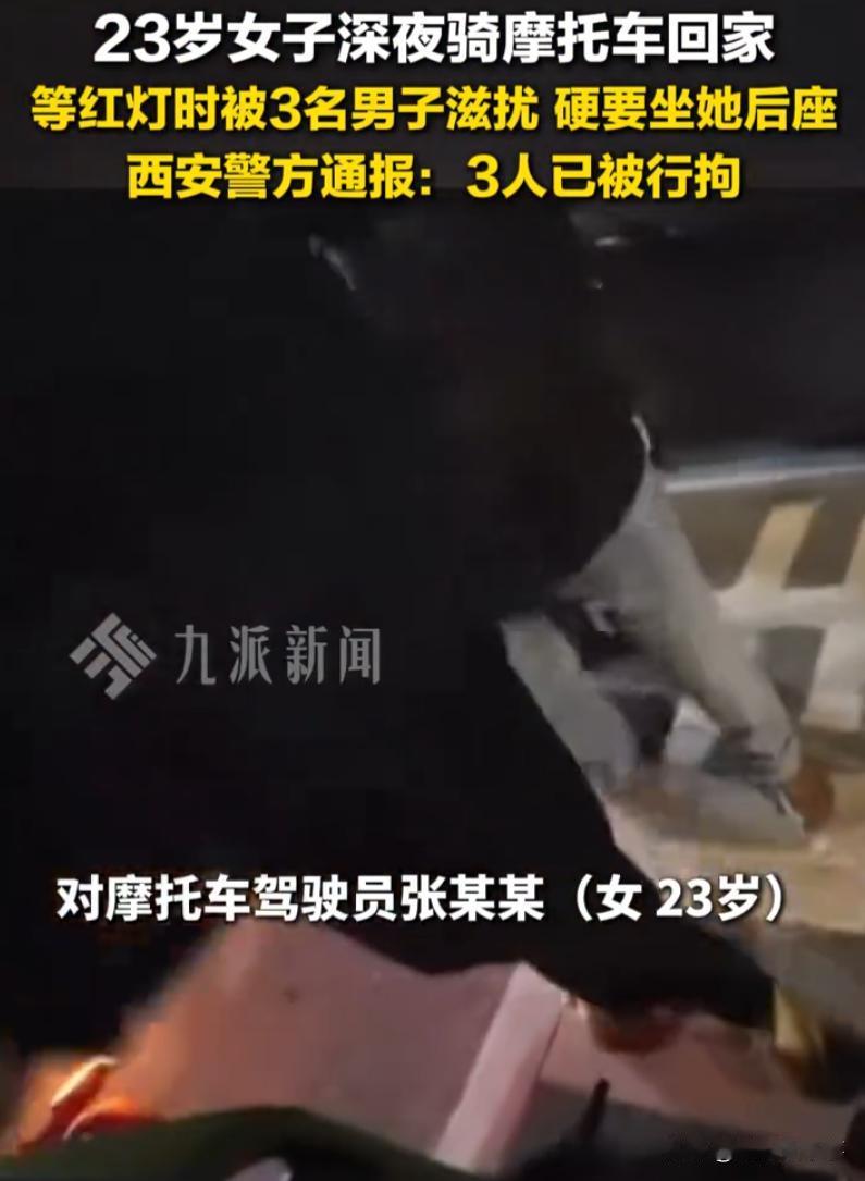 “害群之马!”陕西西安,一女子深夜骑摩托车回家,路口等红灯时,突然三名男子凑上来,也不管女子同意与否,直接强行坐到车子后座上,结果大快人心,警方通报:3人已被行拘