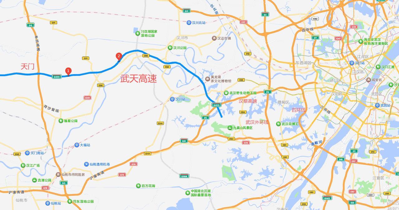 2.武天高速通车之后,从天门驾车到武汉走武天高速是最顺直的路线,在蔡甸接汉蔡高速,转汉蔡高速后,在汉阳琴台下高速后进入武汉中心城区。