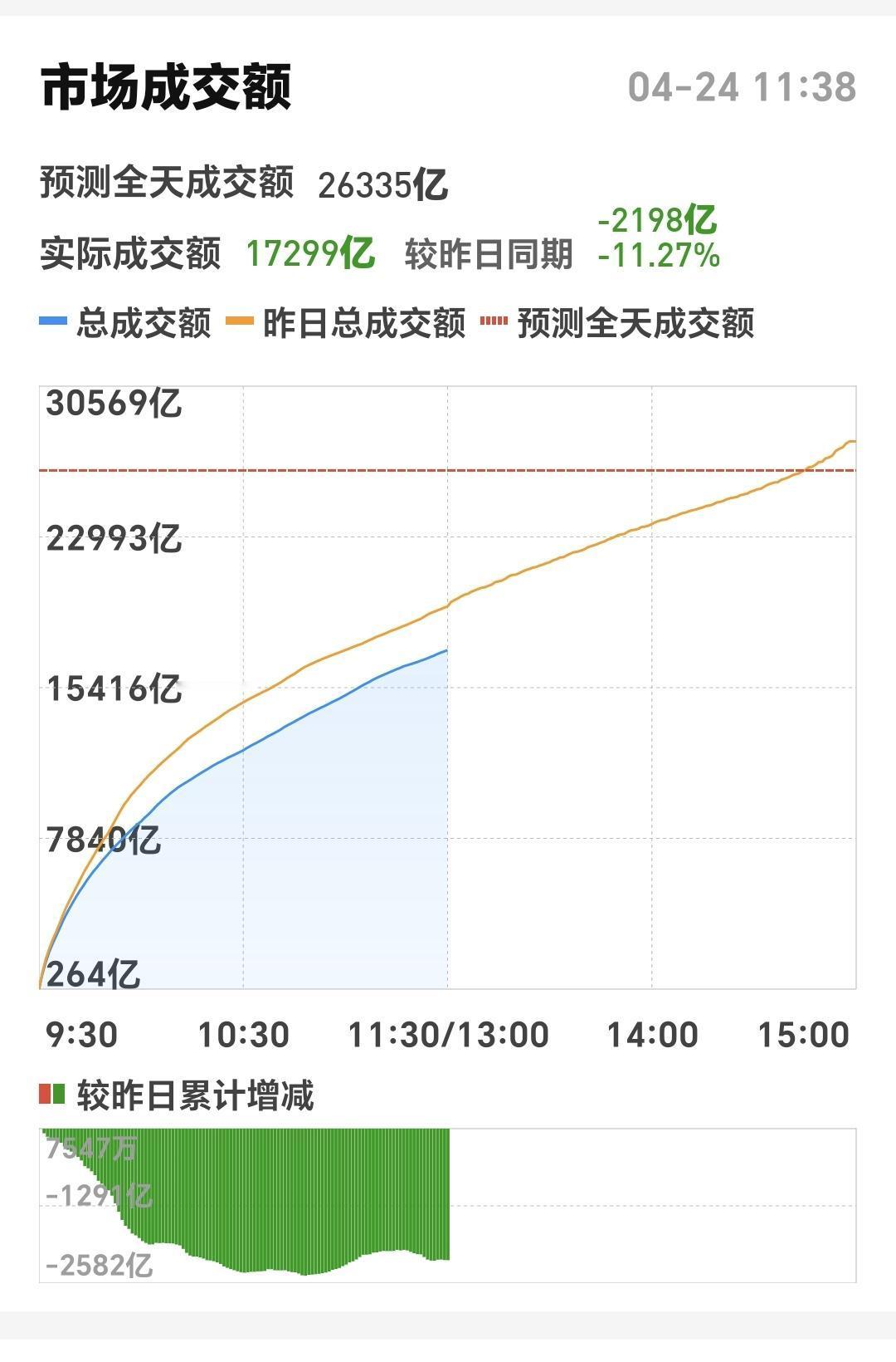 整个股票市场,上涨1455家,下跌3931家,两市累计成交17402亿,相比于上一个交易日同期缩量了2223亿,全天成交量预估26335亿,主力资金净流出749亿。