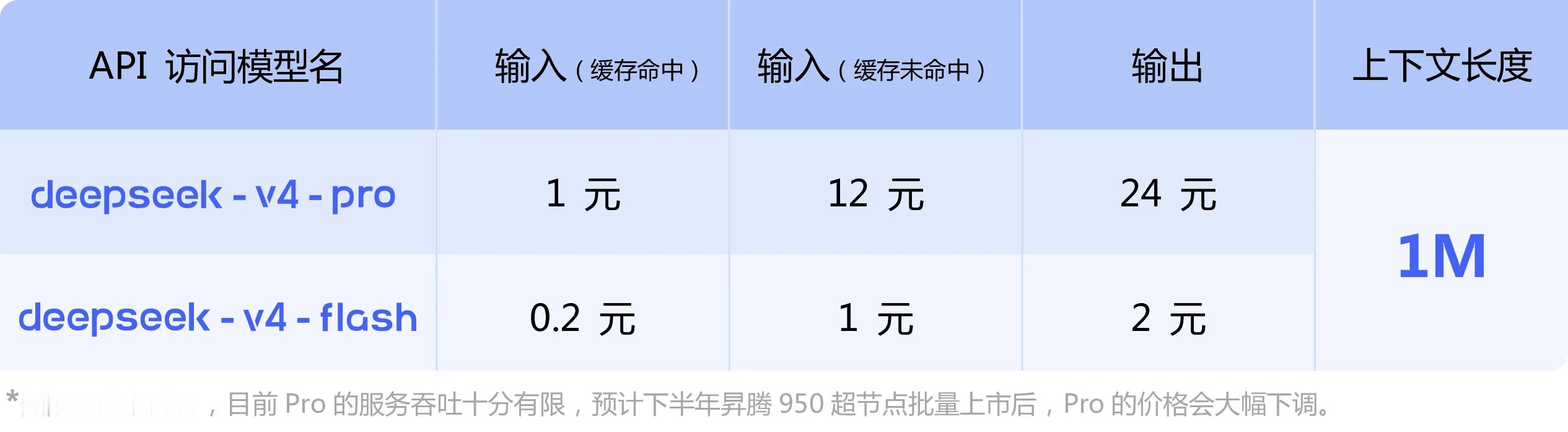 但是其最重要的是图一的下面那行小字,说明DeepSeek V4 基于 华为昇腾芯片 训练和推理!下半年昇腾950芯片大上市后,Pro版还会巨幅降价