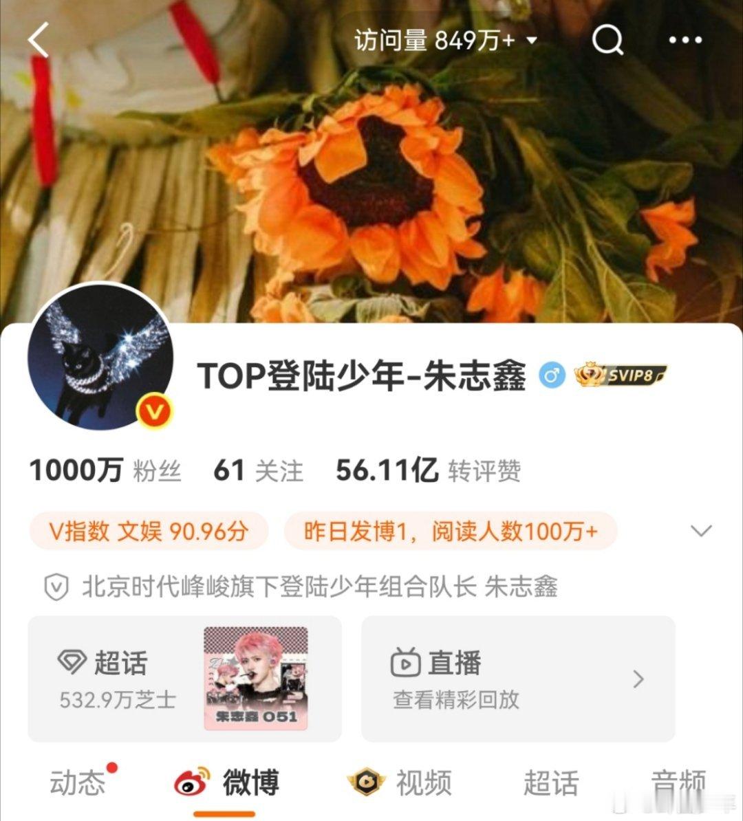 朱志鑫团内第一个粉丝破千万朱志鑫一千万粉丝了 恭喜朱志鑫解锁千万粉丝里程碑,作为