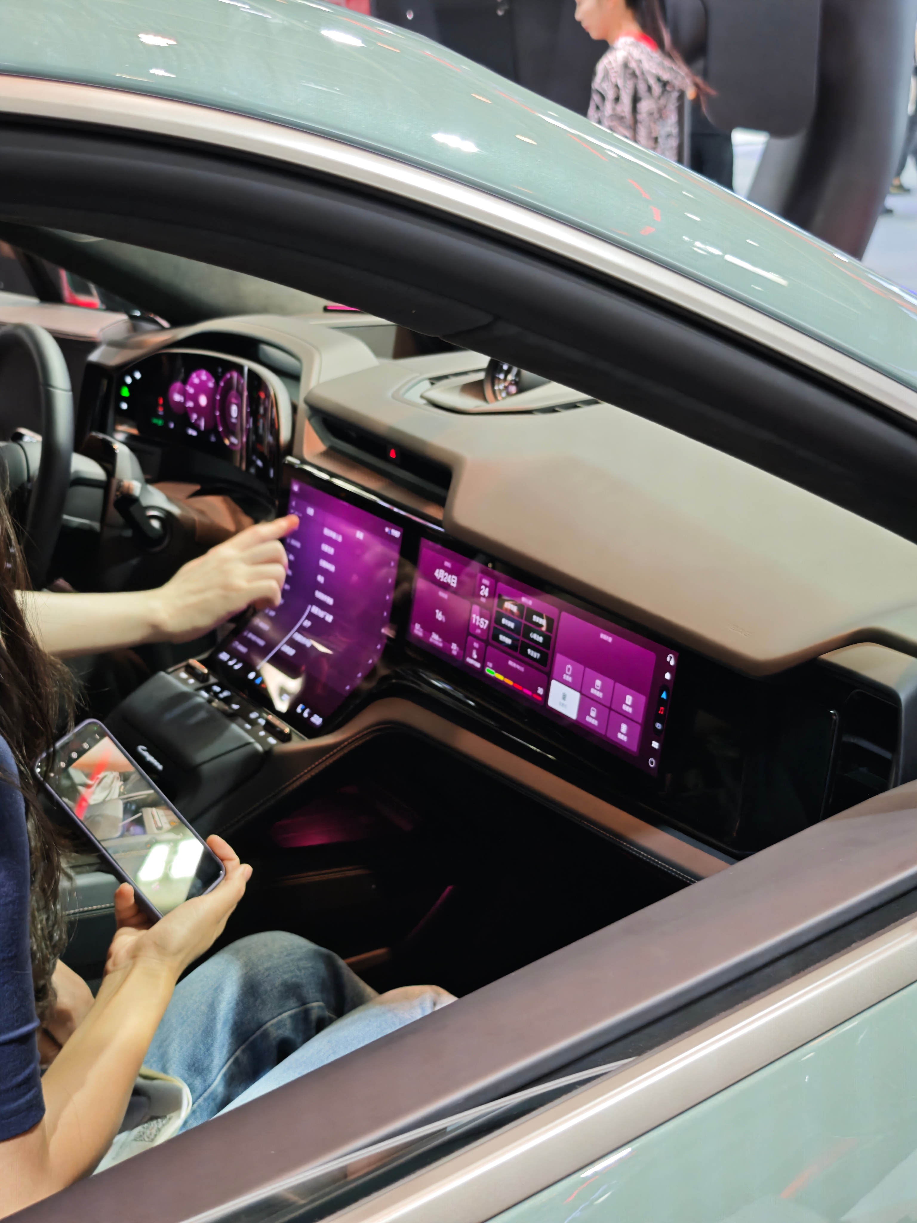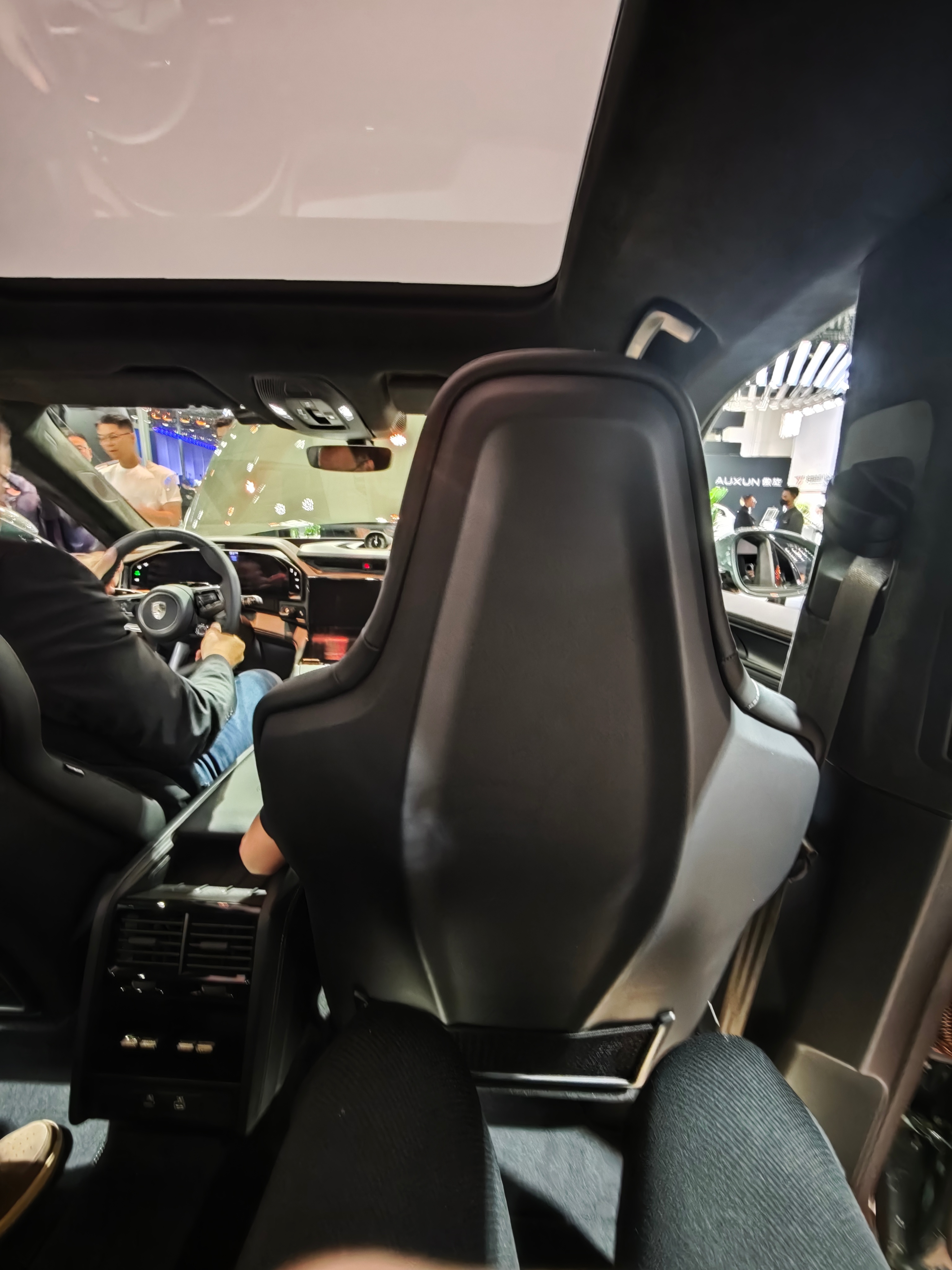 柔性性屏挺酷的。车头甚至安上了一个大面积的毫米波雷达,但后排的座椅取向还是非常运动的
