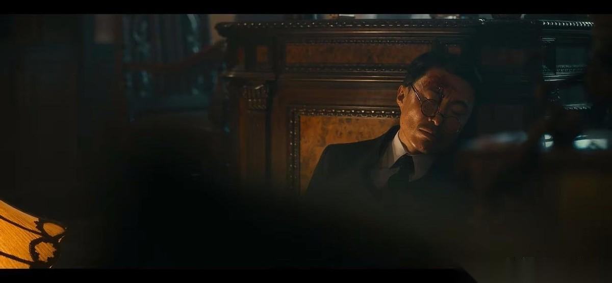 可结果呢?等老爷子当场血溅一地了,这帮人突然神勇起来。断电、拔枪,三下五除二就把屋外的反派杀了个干净。