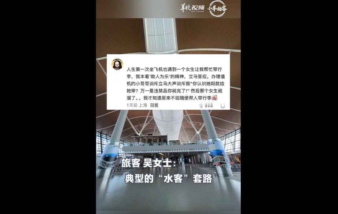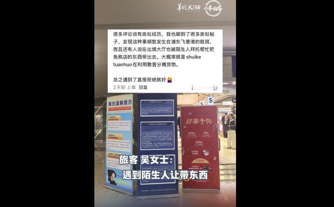 近日,有旅客反映在上海浦东机场遭陌生人纠缠,要求帮忙分担行李,担心行李含违法物品。