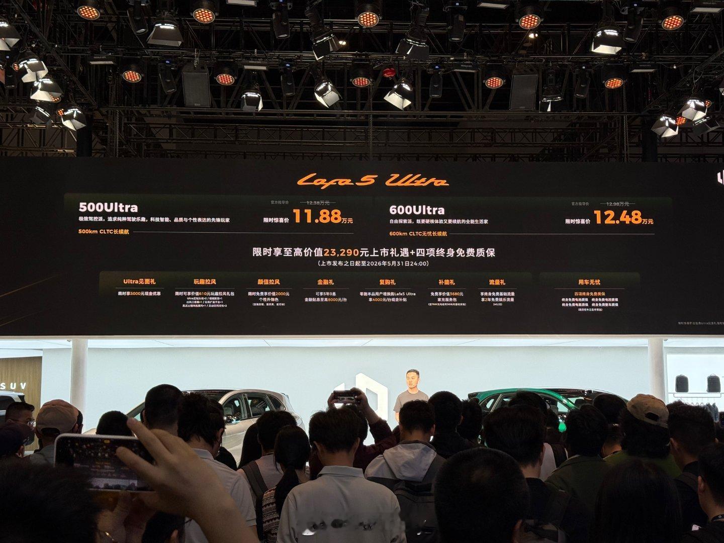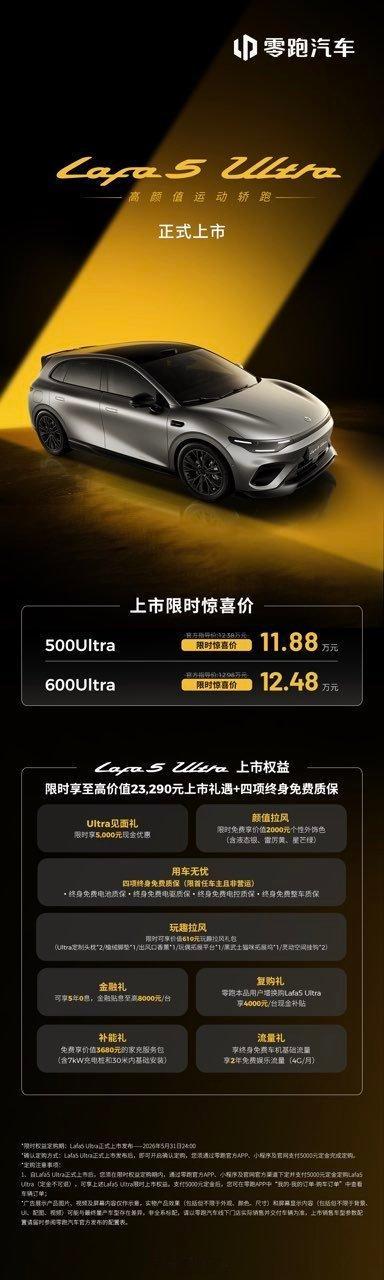 新车共推出 500Ultra 和 600Ultra 两个版本,权益至高价值 23290 元,11.88-12.48万元的价格,好而不贵,拥有Ultra从未如此简单,仅需10多万元,就能获得开得爽,真愉快的真实感受。