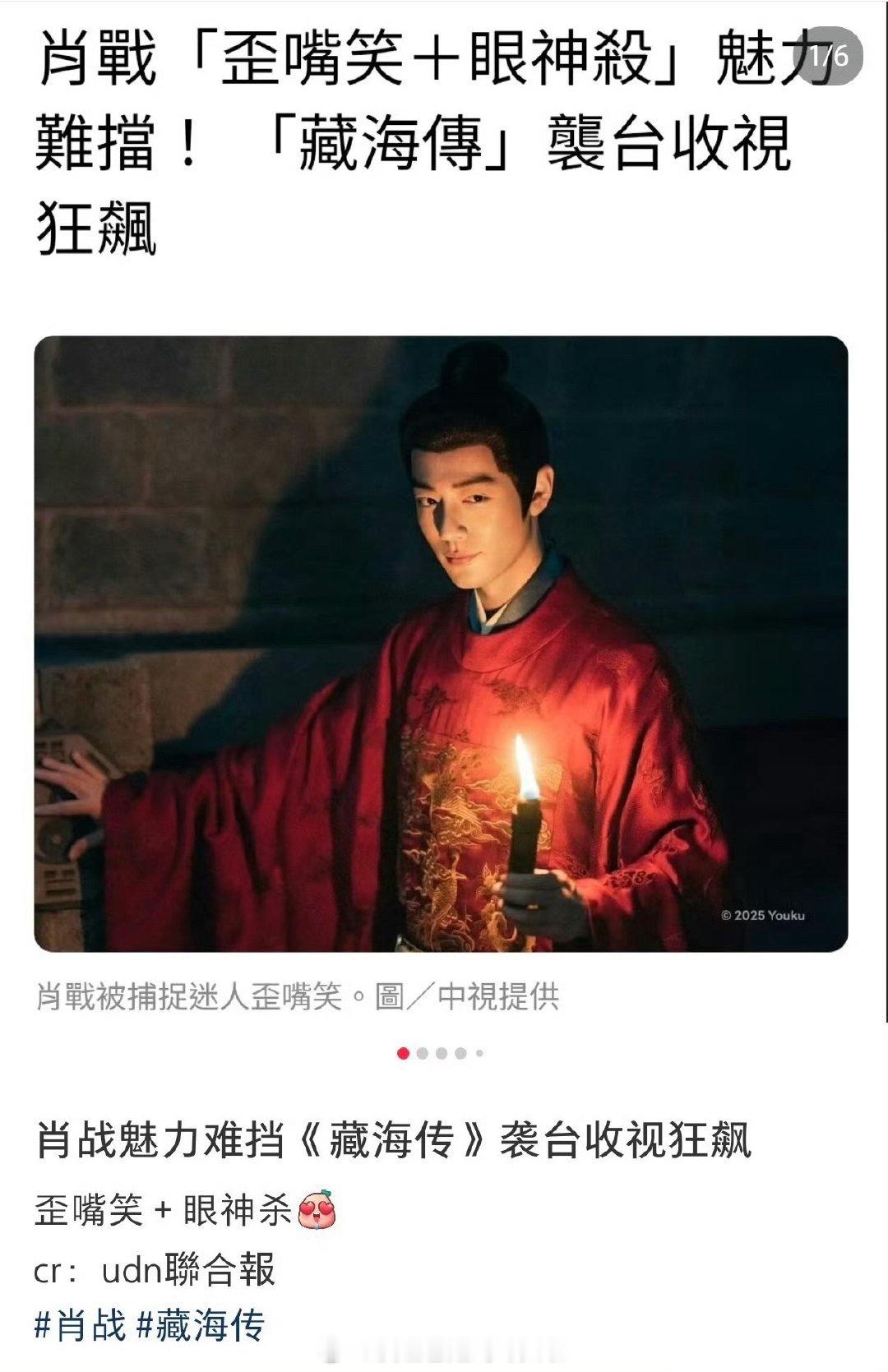 台湾三大主流日报之一的《台湾联合报》报道:肖战魅力难挡,《藏海传》收视狂飙,收视