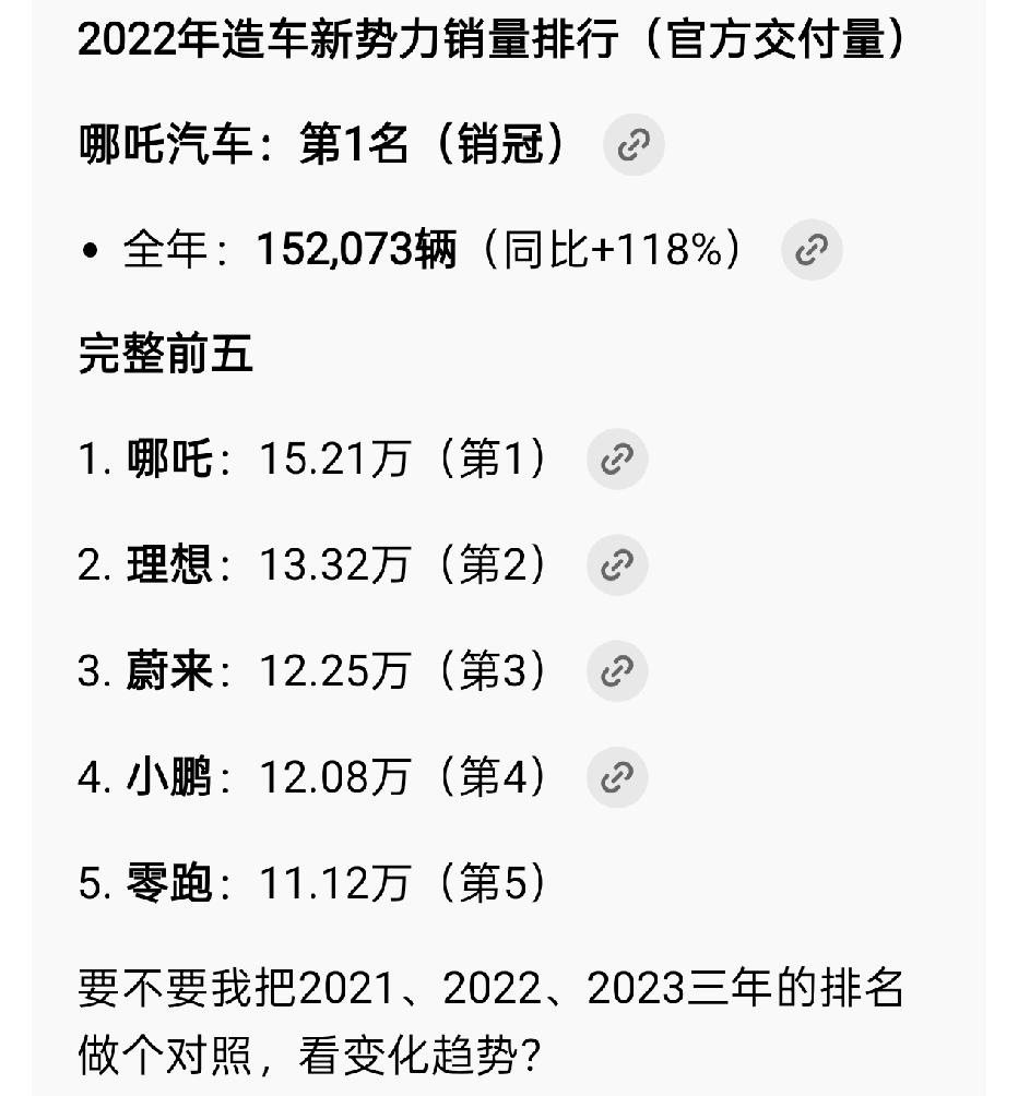 根据三个生产基地建设时间,2022年有两个投产的基地,同时2022年哪吒汽车以15万辆排名新势力造车第一名。在当时新能源红火发展确实是个奇迹。所以有了哪吒汽车ceo张勇在2023年的采访:去年拿到100多亿投资,2023年又拿到几十亿投资。已经在上市不上市做选择了。