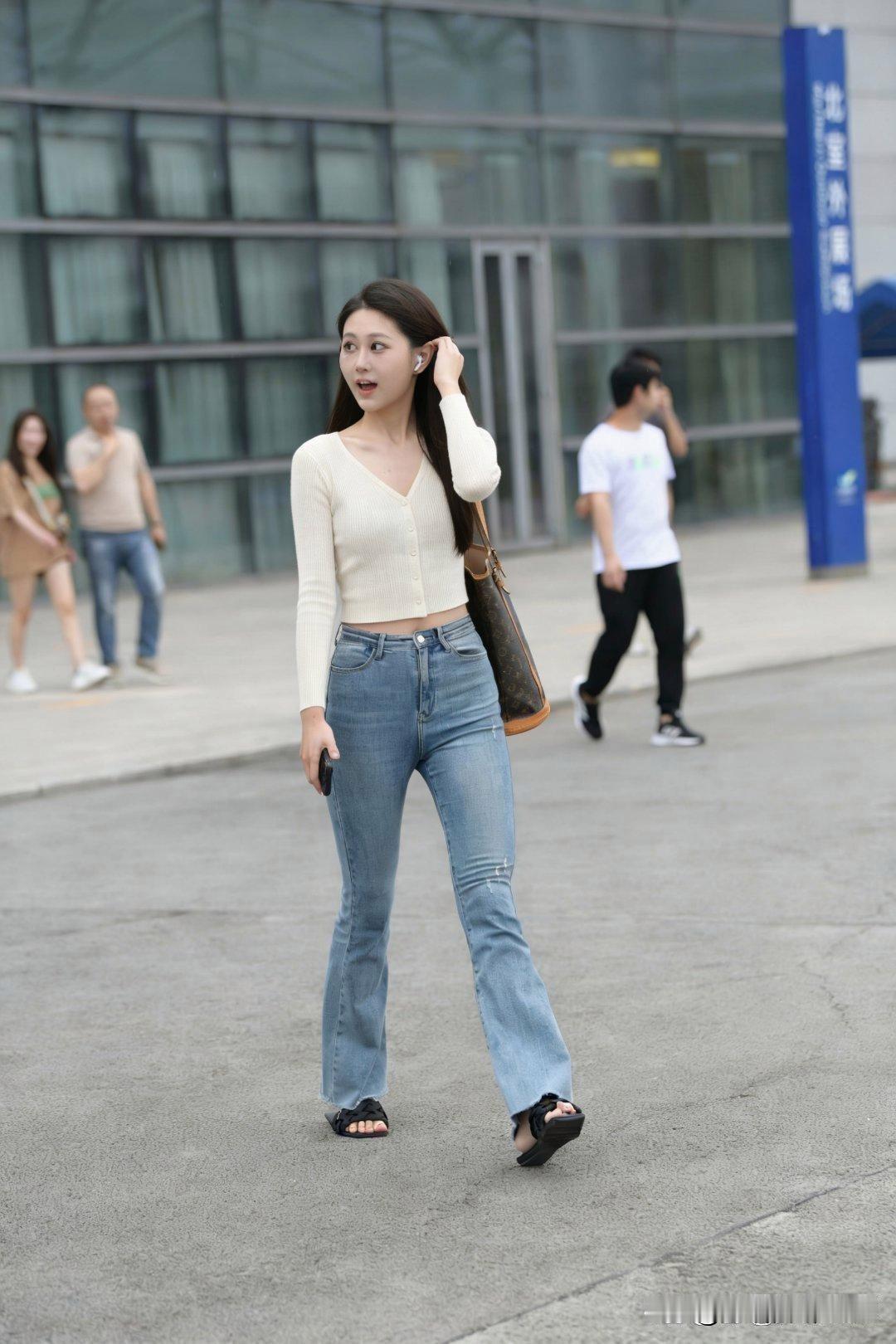 都市时尚少女漫步街头,松弛感穿搭简直yyds!